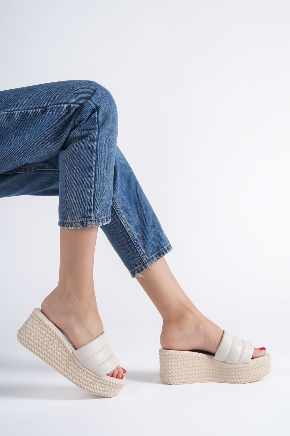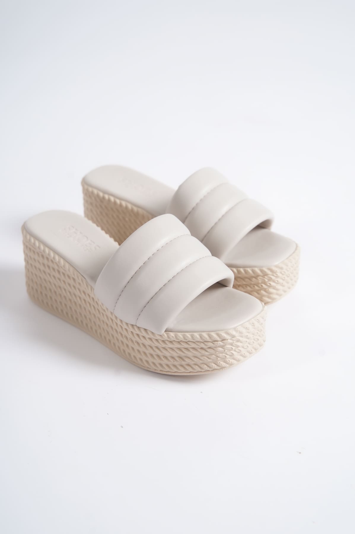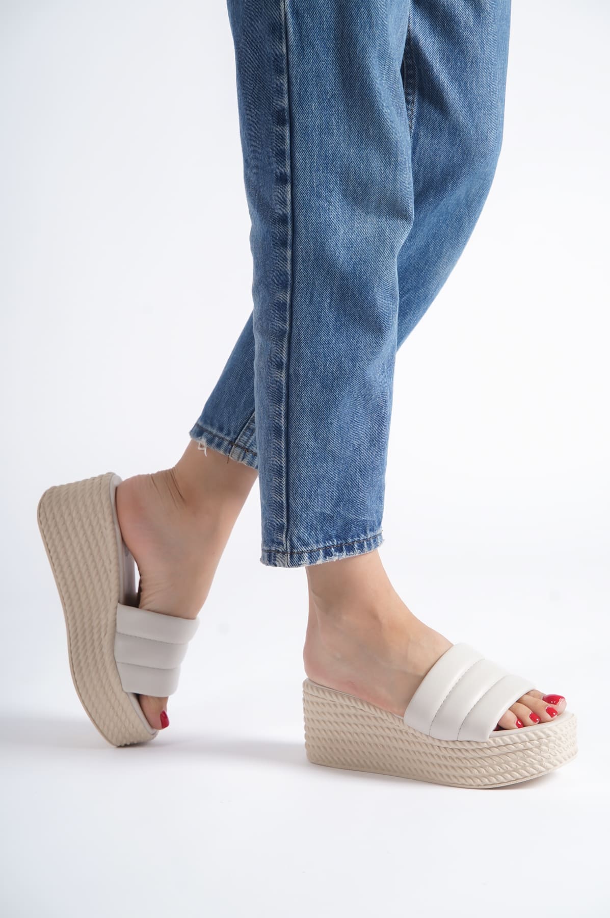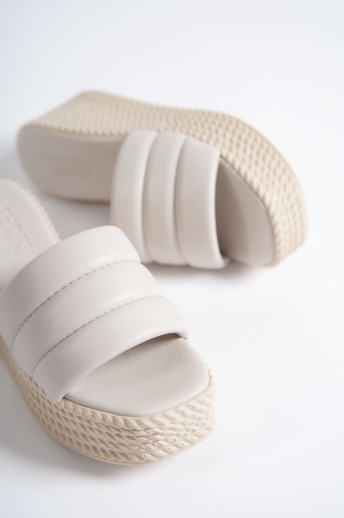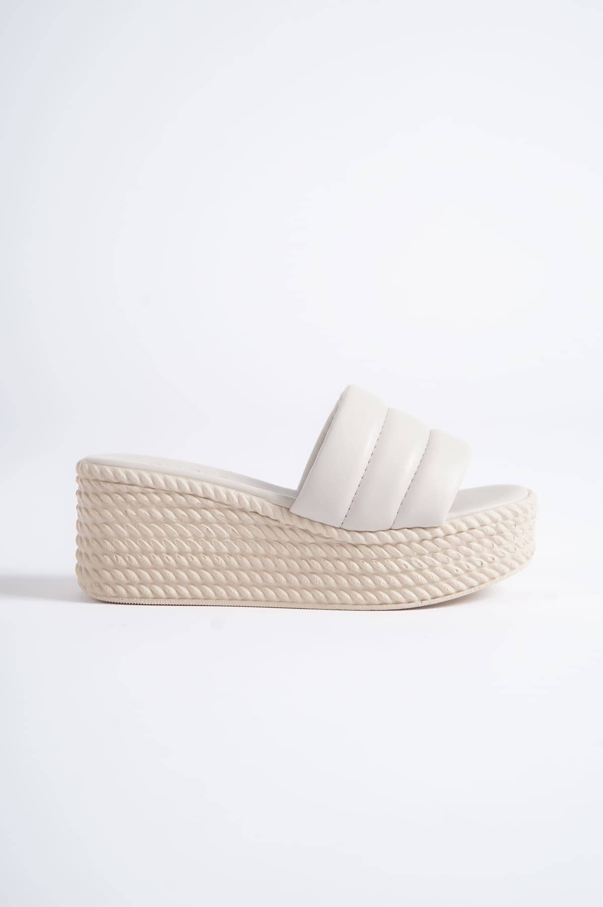 REINA Dolgu Topuklu Ortopedik Taban Hasır Görünümlü Kadın Terlik CKT – Krem