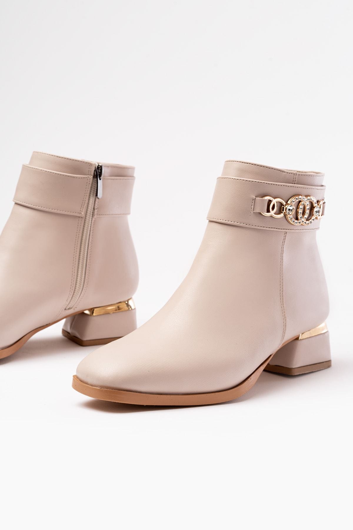 RM-502 Bej Toka Aksesuarlı Topuklu Fermuarlı Günlük Kadın Bot
