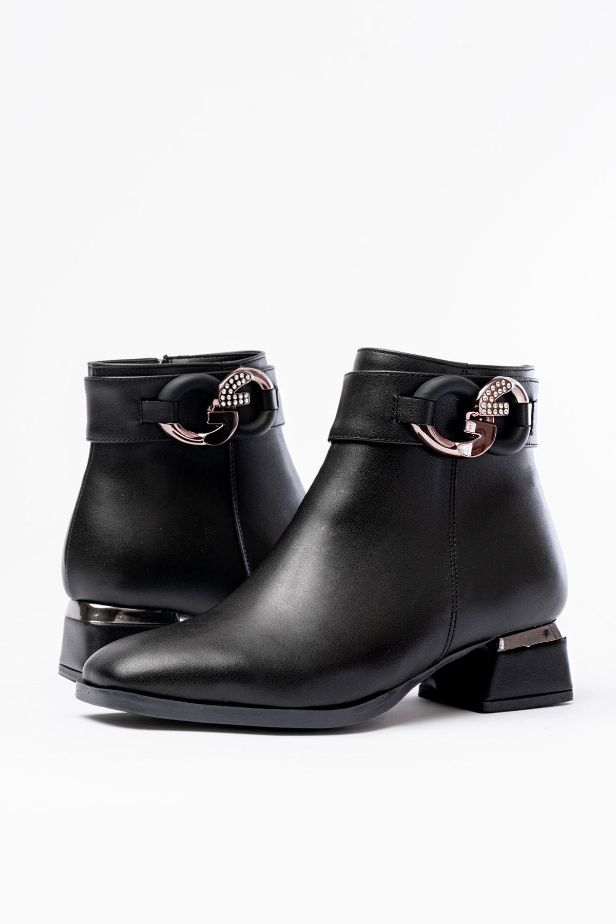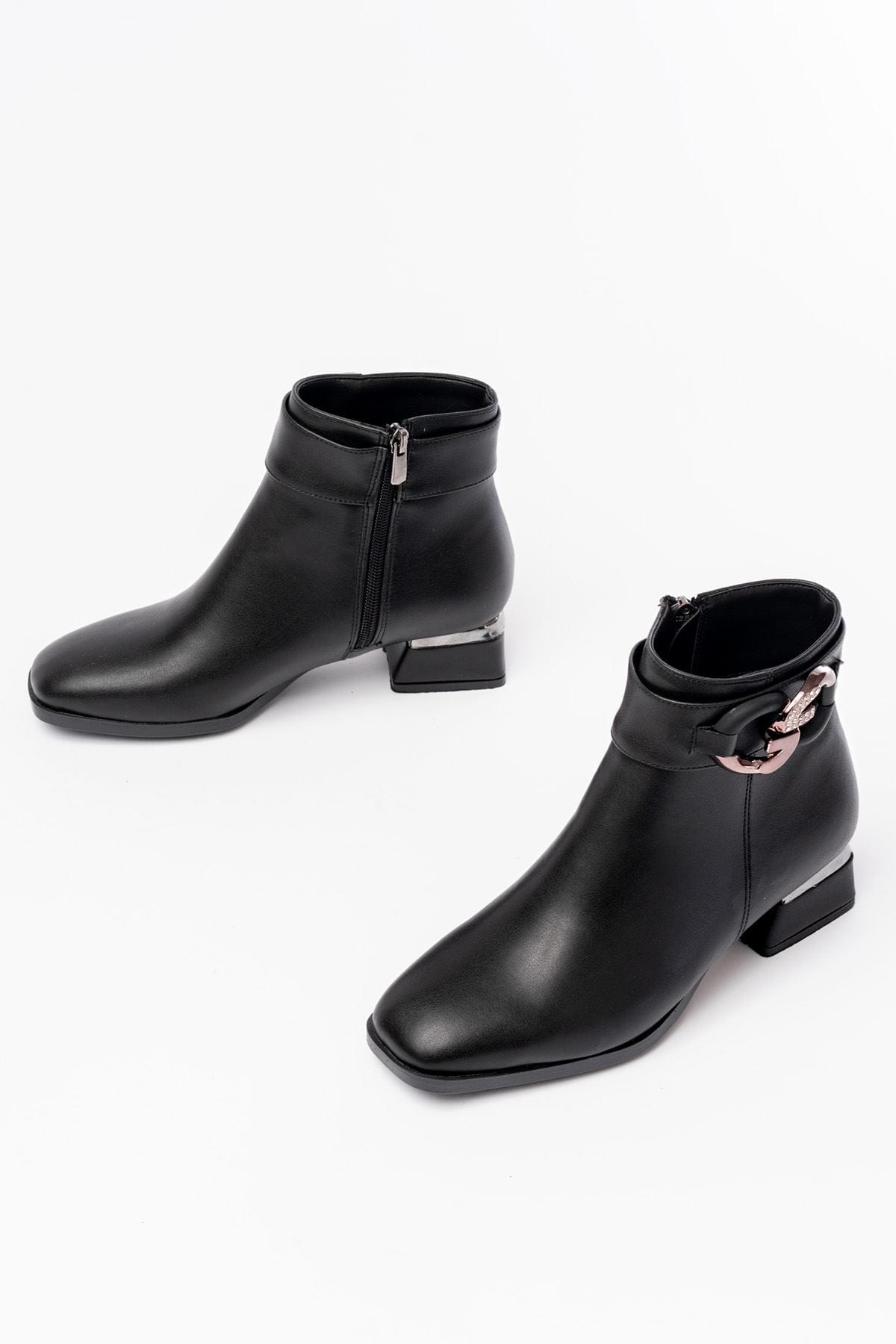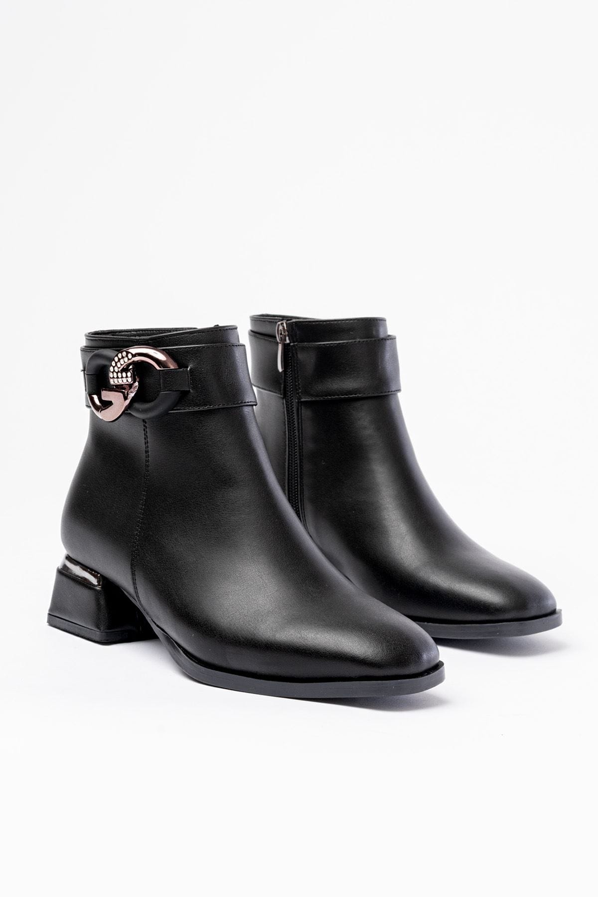 RM-504 Siyah Toka Aksesuarlı Topuklu Fermuarlı Günlük Kadın Bot