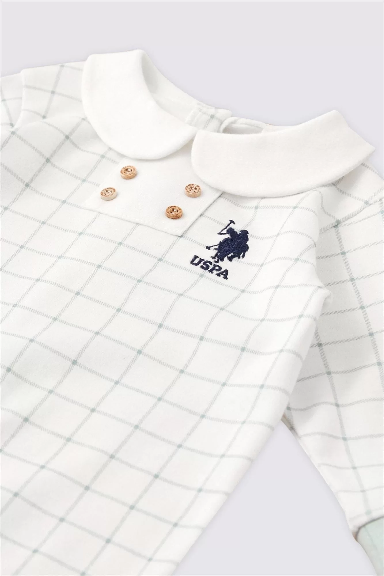 assn buttoned yeşil bebek tulum markanın kalite ve tarzını yansıtarak bebeğinizin giyim koleksiyonuna şıklık katıyor.