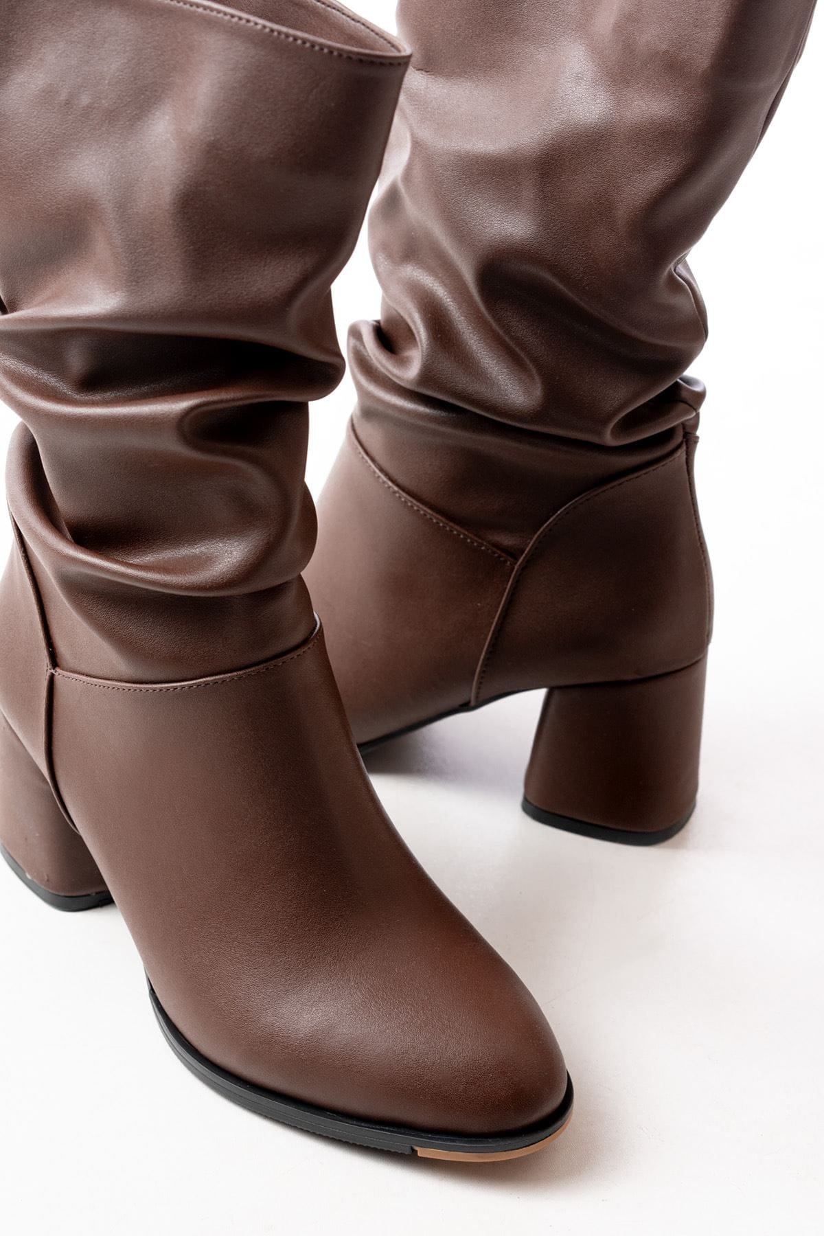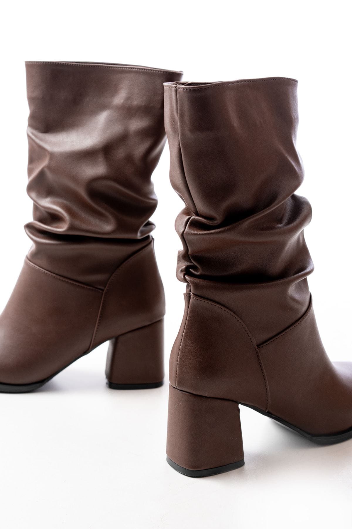 RS-2430 Kahverengi Topuklu Körüklü Günlük Kadın Bot