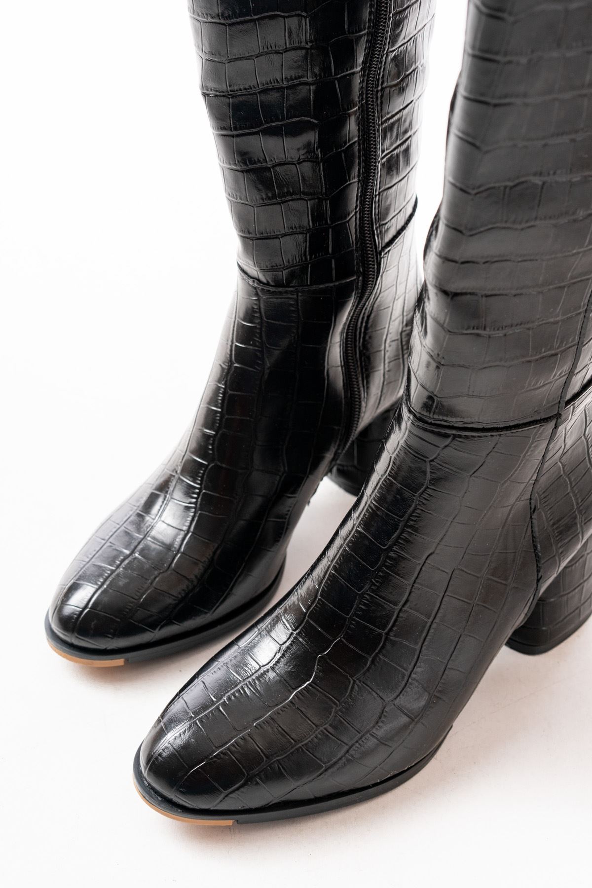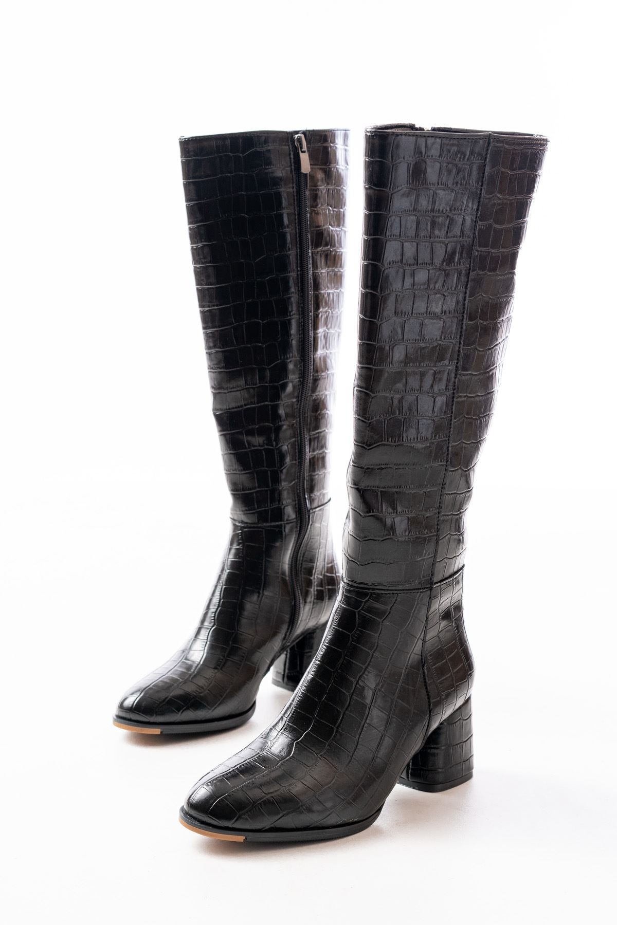RS-2432 Siyah Kroko Topuklu Fermuarlı Günlük Kadın Çizme