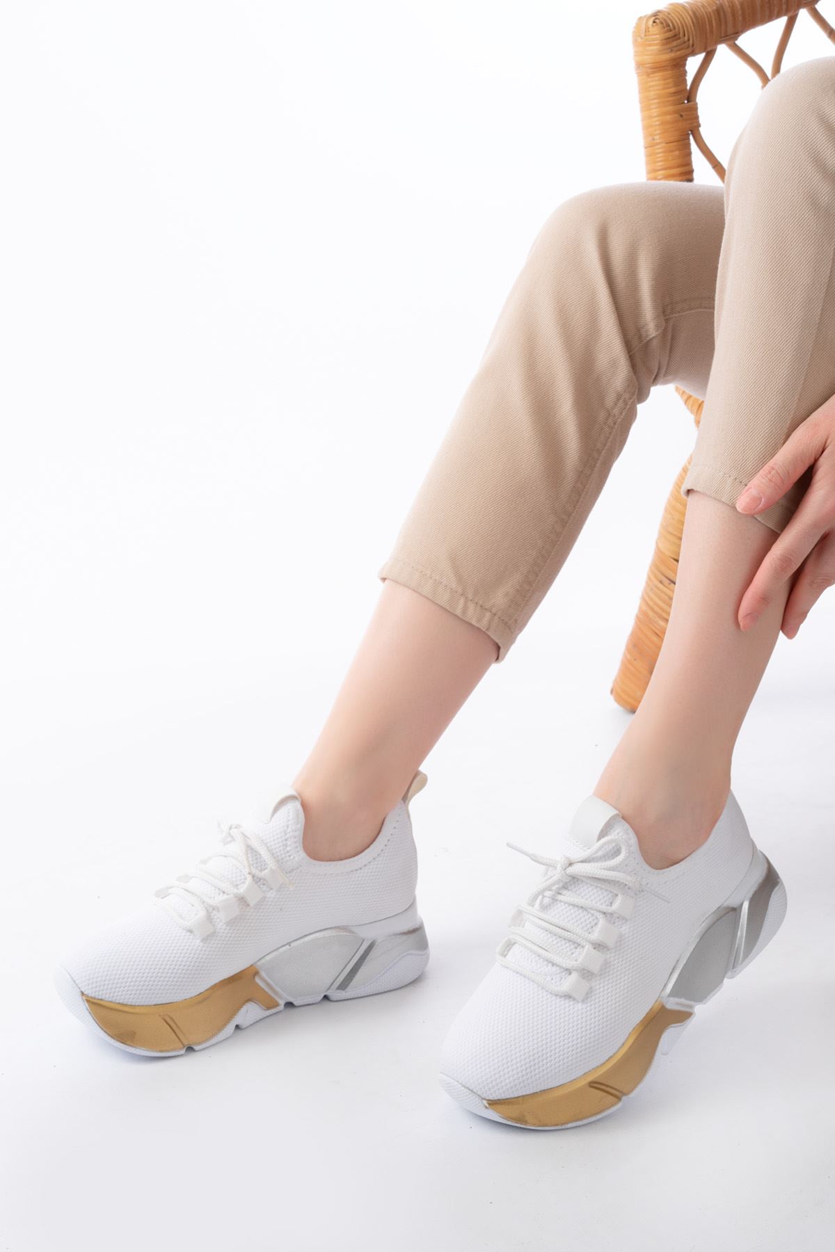 RS-400 Beyaz Bağcıklı Fileli Renkli Taban Günlük Kadın Spor