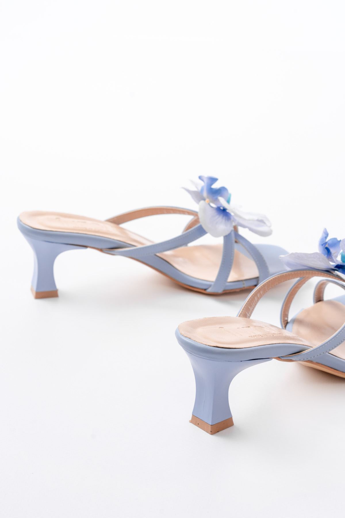 S-622 Bebe Mavi Orkide Detaylı İnce Topuklu Kadın Terlik