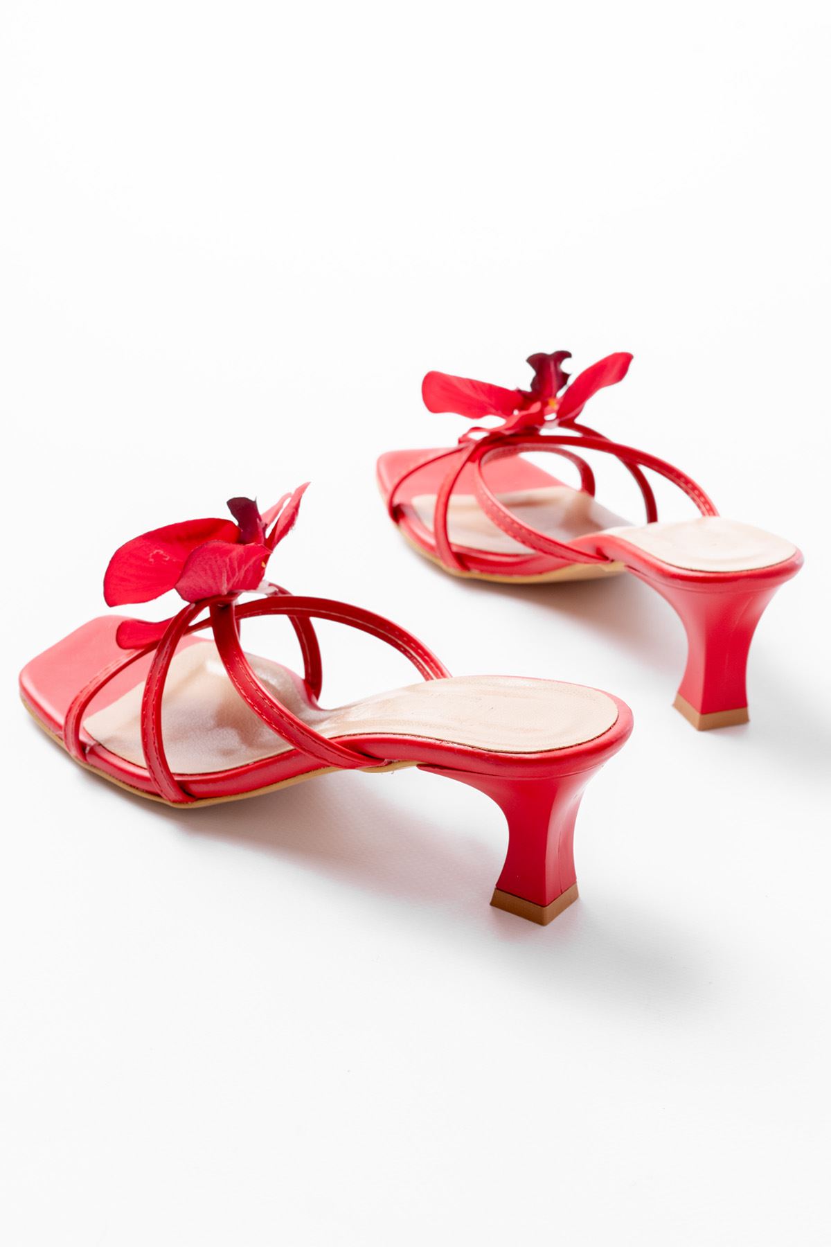 S-622 Kırmızı Orkide Detaylı İnce Topuklu Kadın Terlik