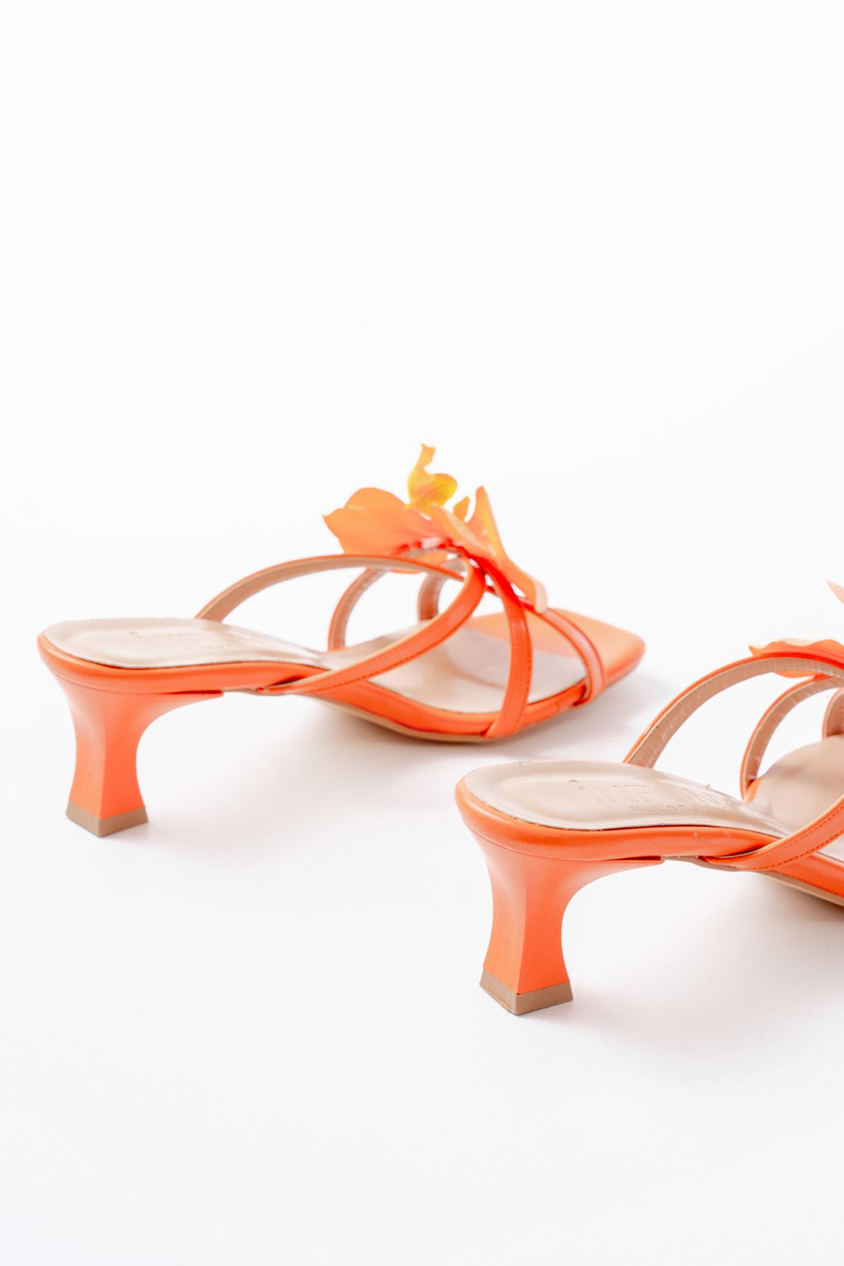 S-622 Orange Orkide Detaylı İnce Topuklu Kadın Terlik