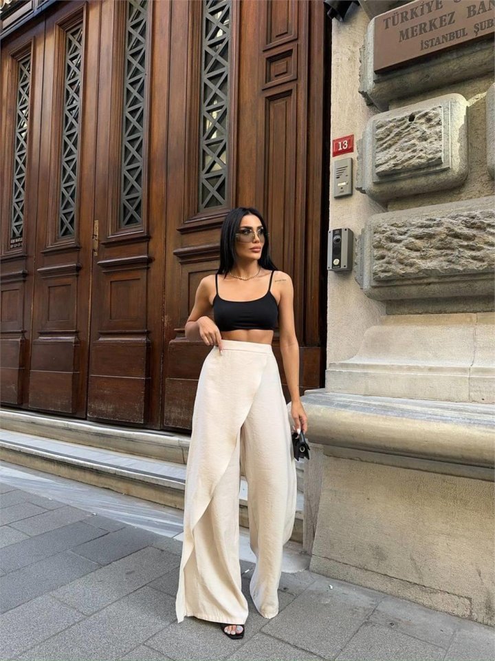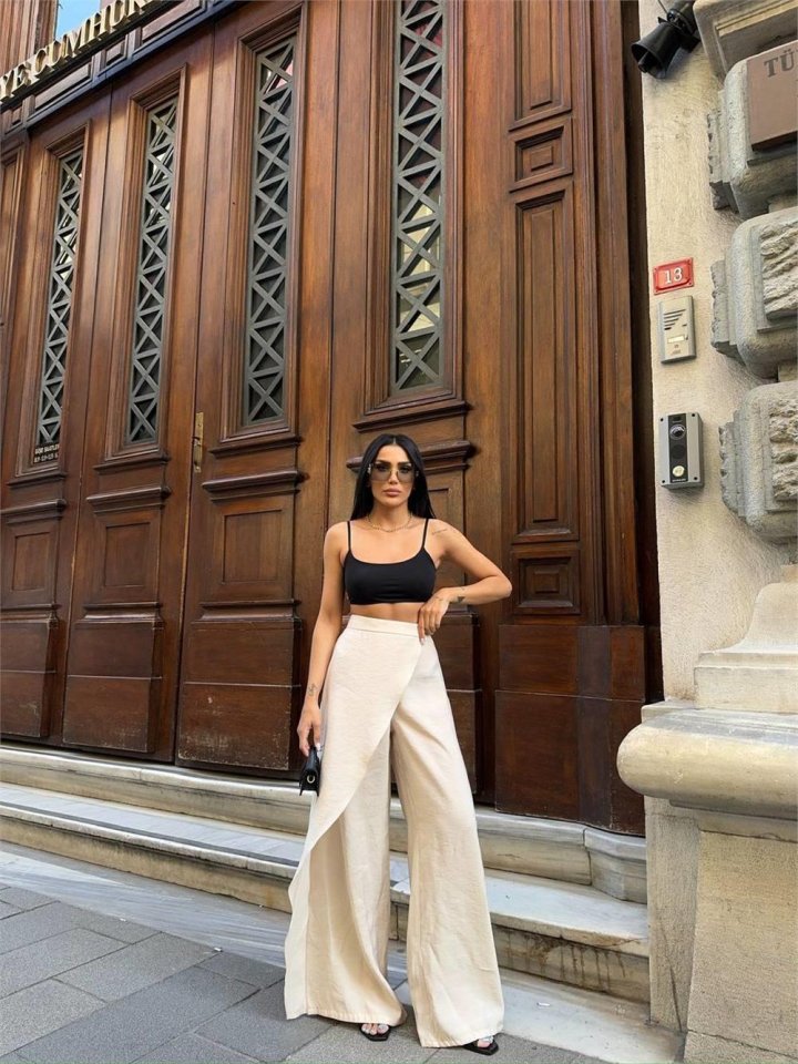 ŞALVAR KAPAK BAĞLAMALI PANTOLON – Bej