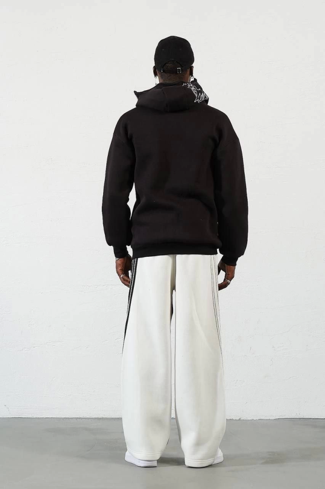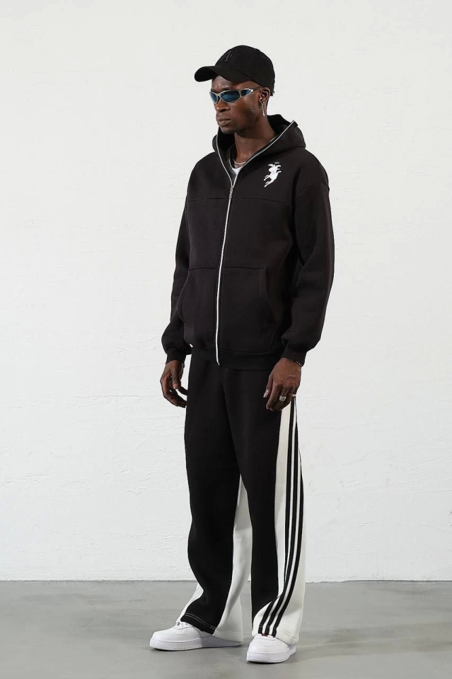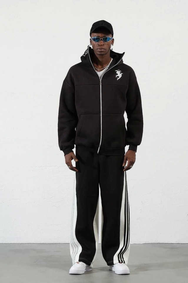Samuray ZIP Fermuarlı Kapşonlu Hırka – Siyah