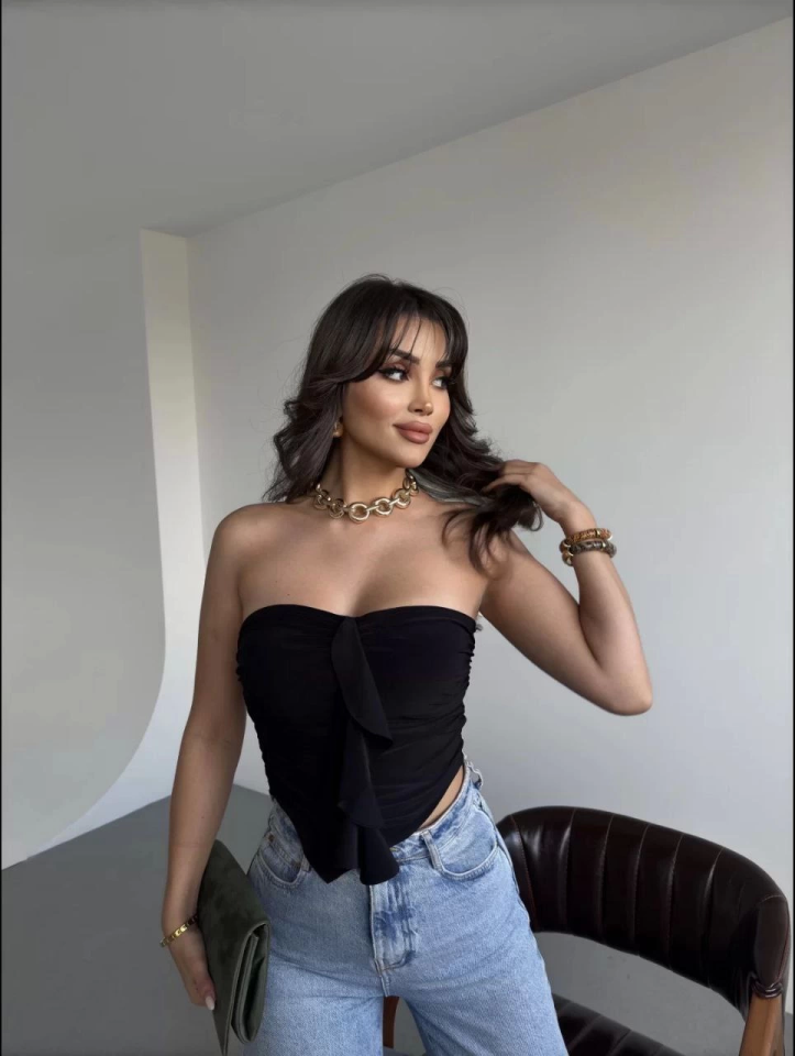 Sandy Asimetrik Büzgülü Straplez Bluz – Siyah