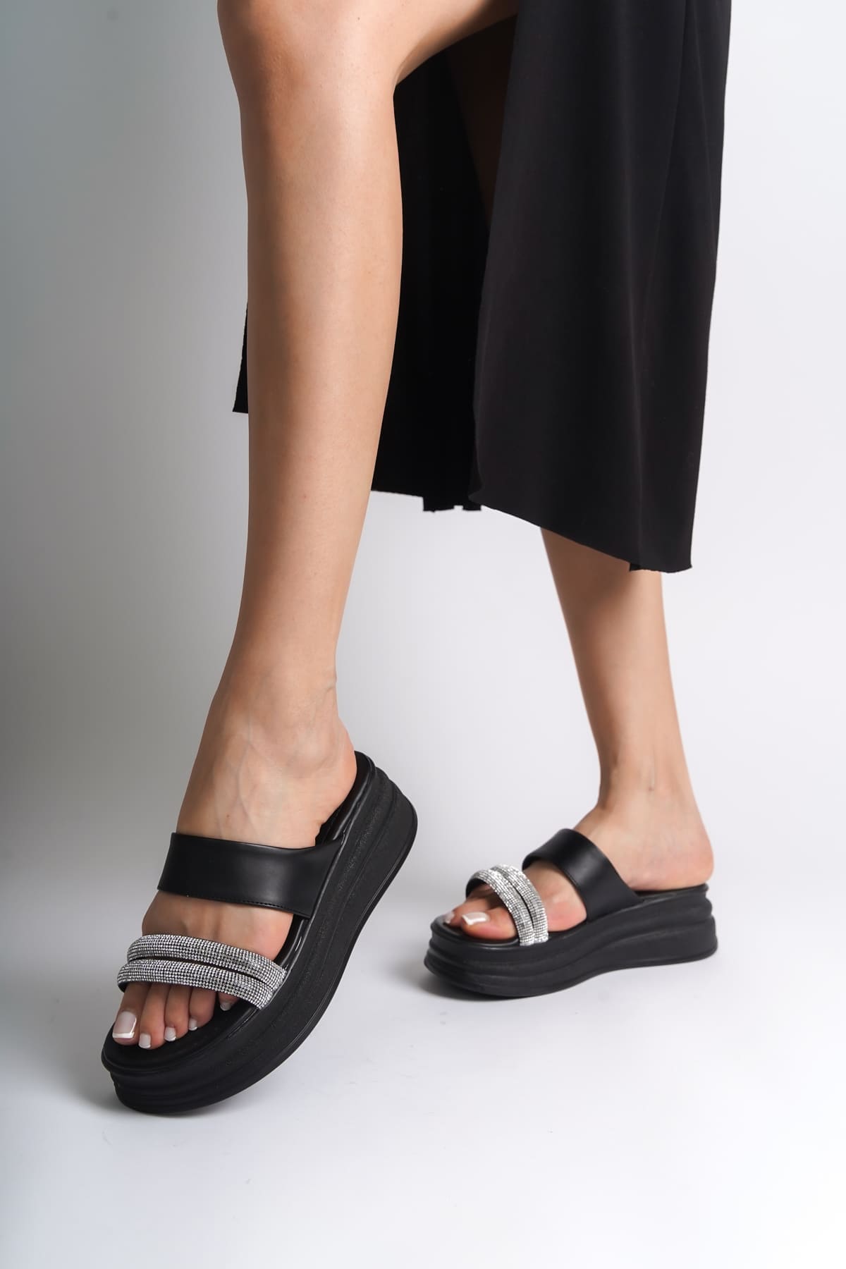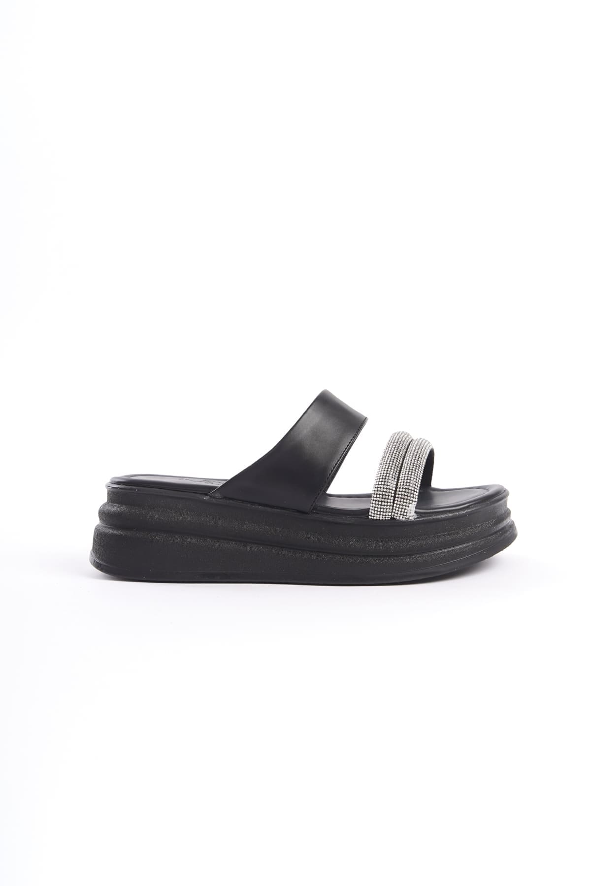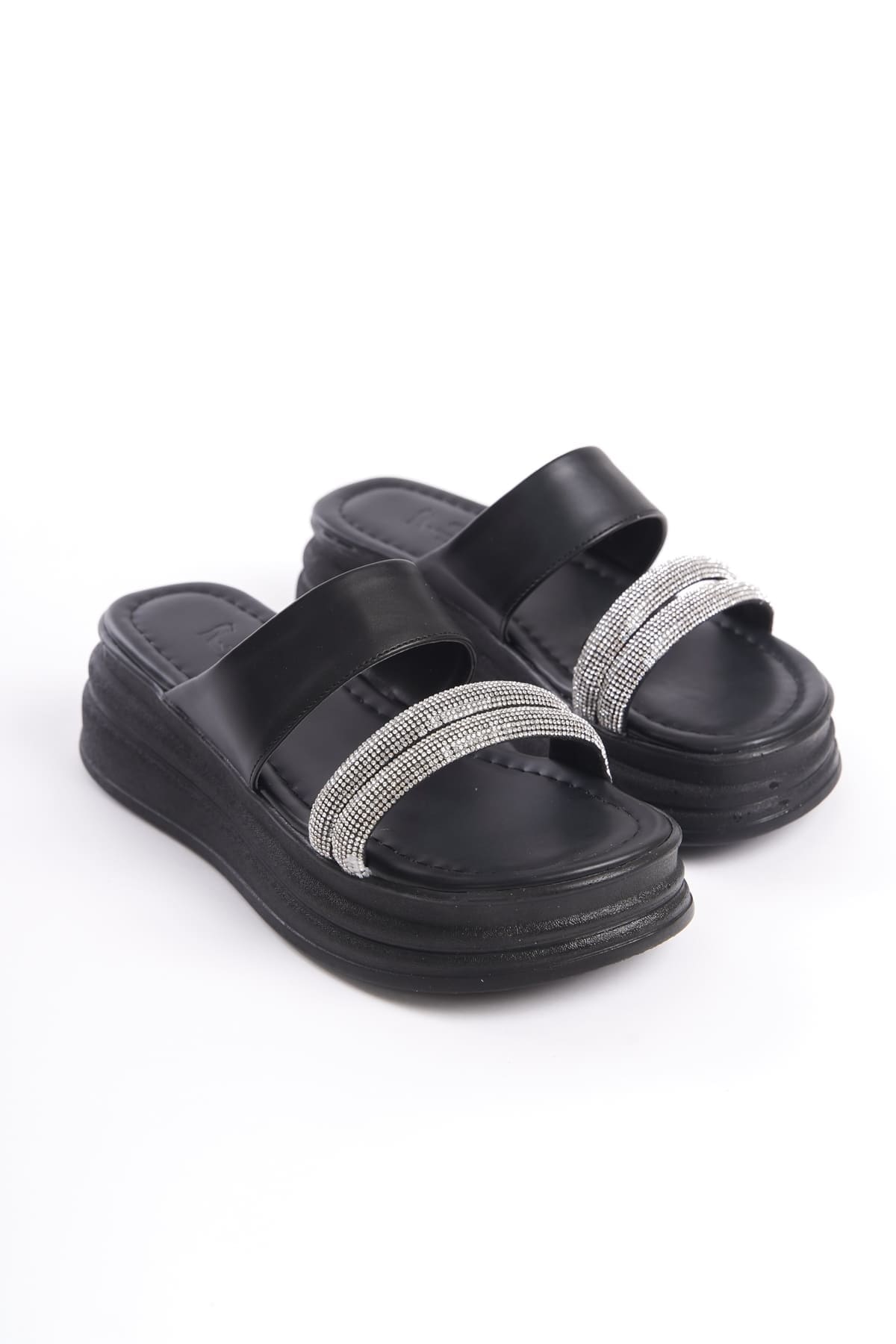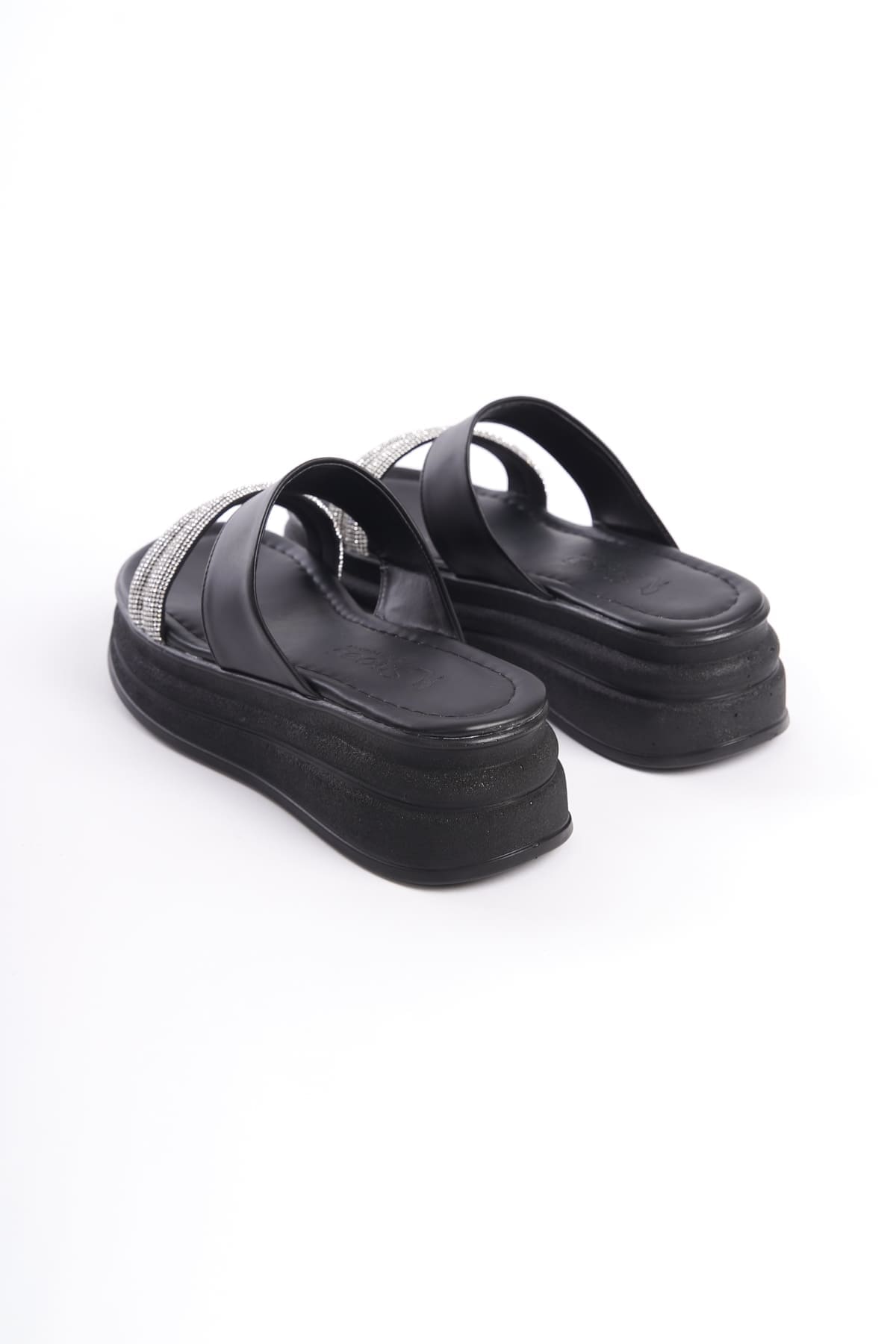 SARAH Düz Topuklu Taşlı Şeritli Kalın ve Ortopedik Taban Kadın Terlik CST – Siyah