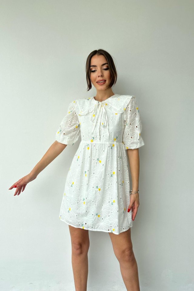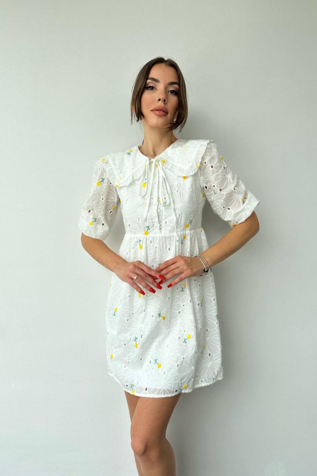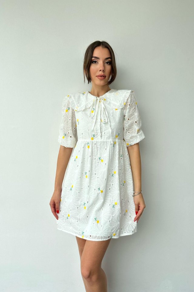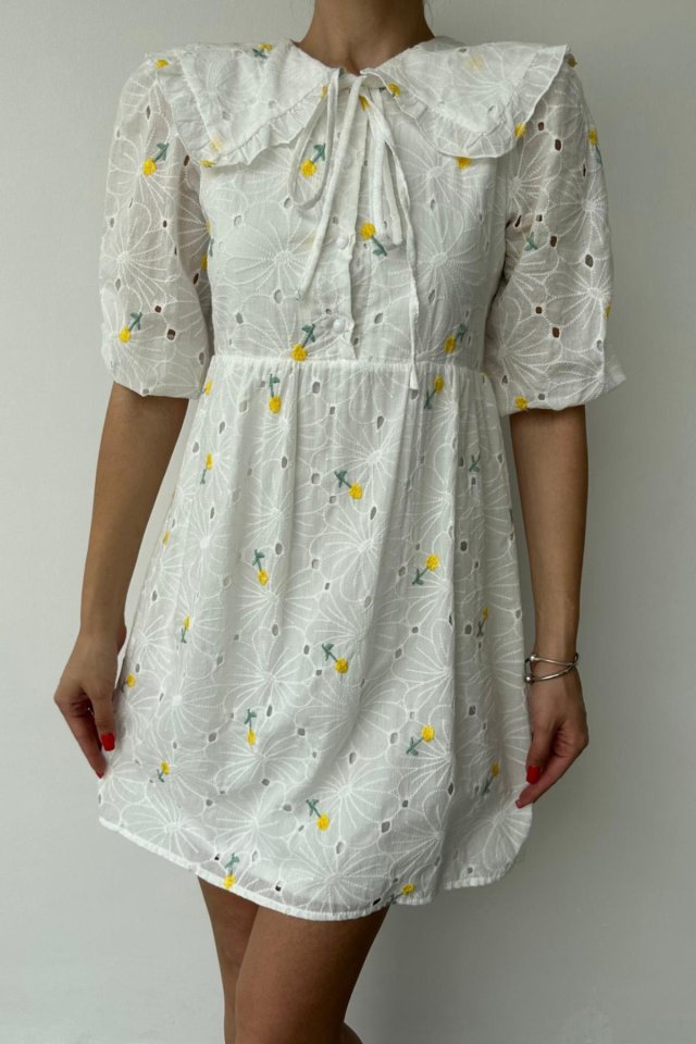 Sarı Bebe Yakalı Brode Elbise