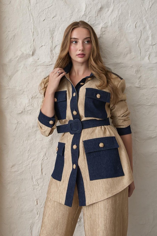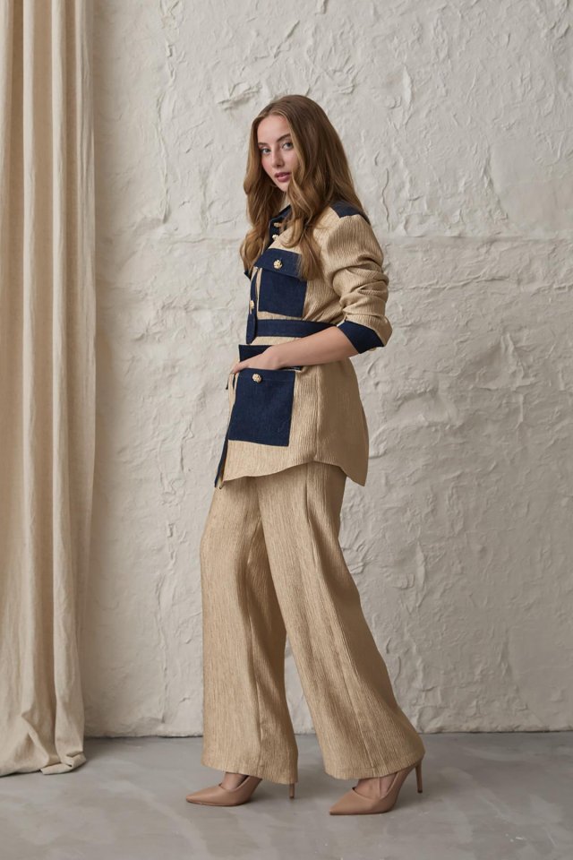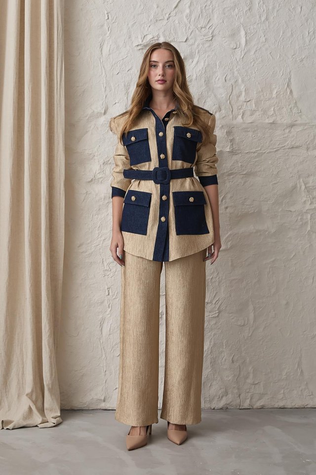 Sarı Garnili Cepli Gömlek Ve Pantolon Takım