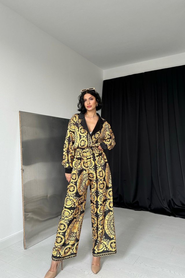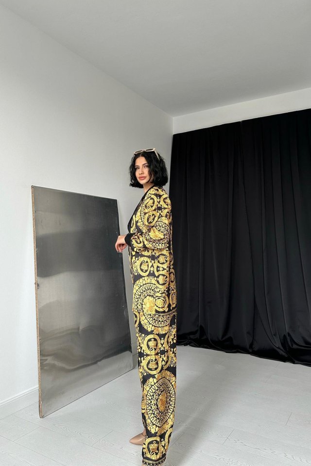 Sarı Gömlek Ve Baskılı Pantolon Takım