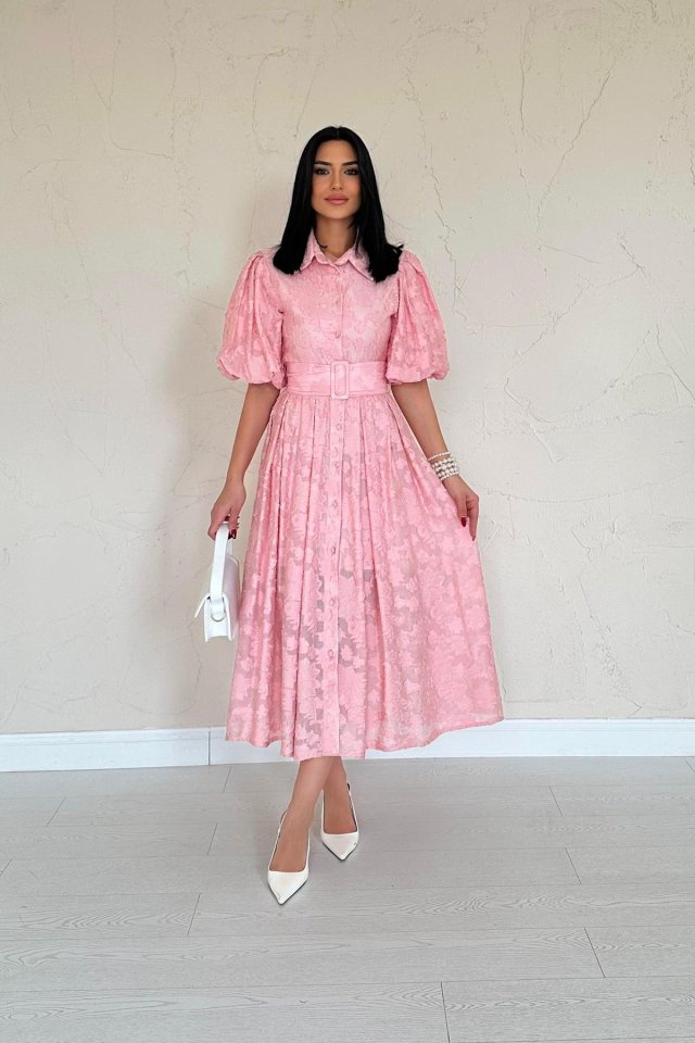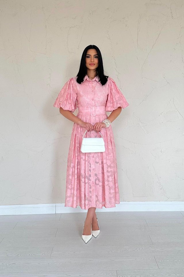 Sarı Kemerli Balon Kollu Elbise