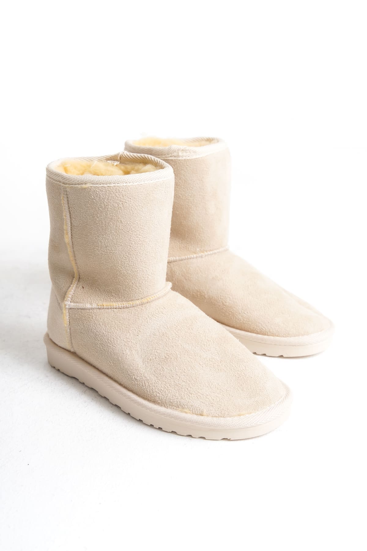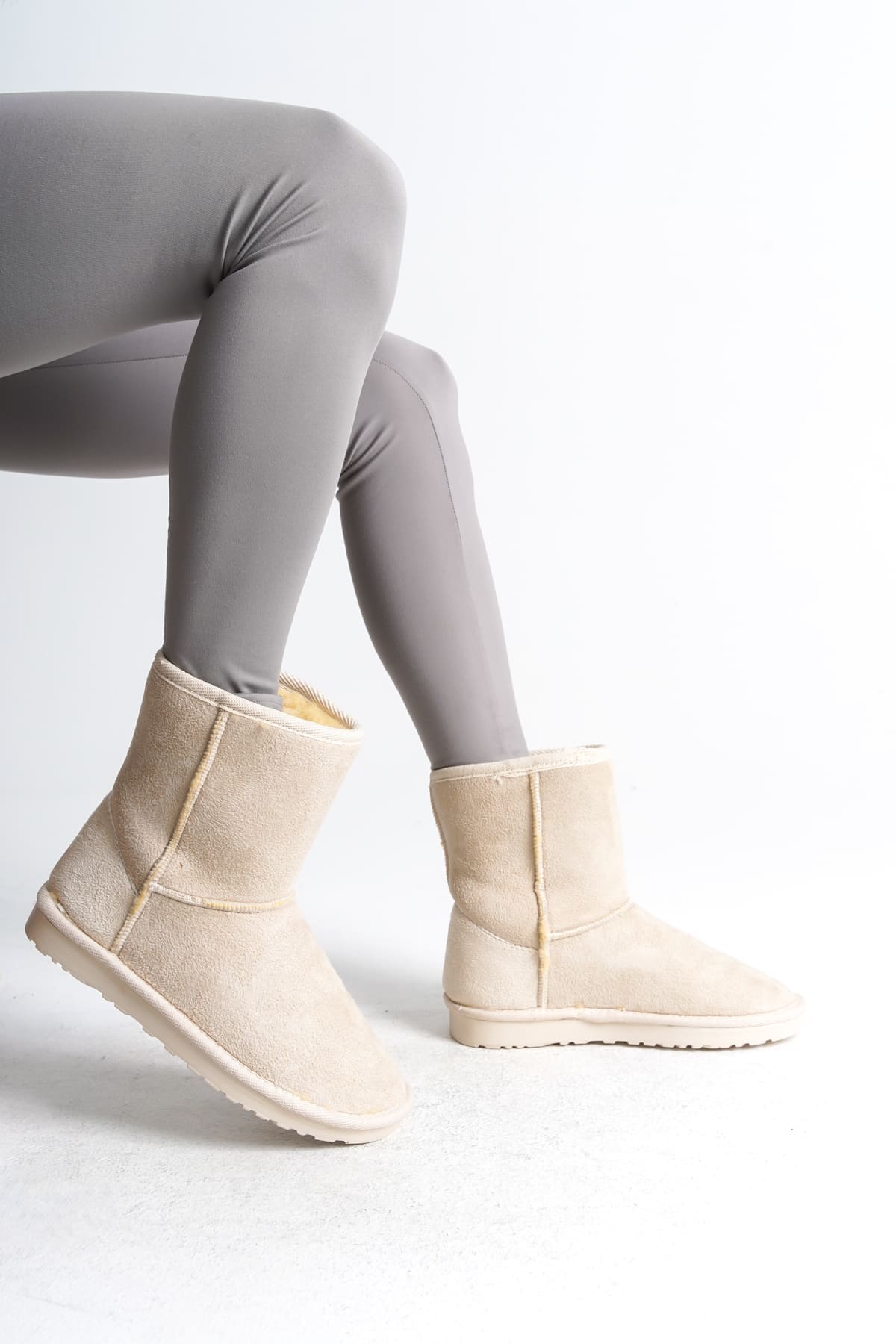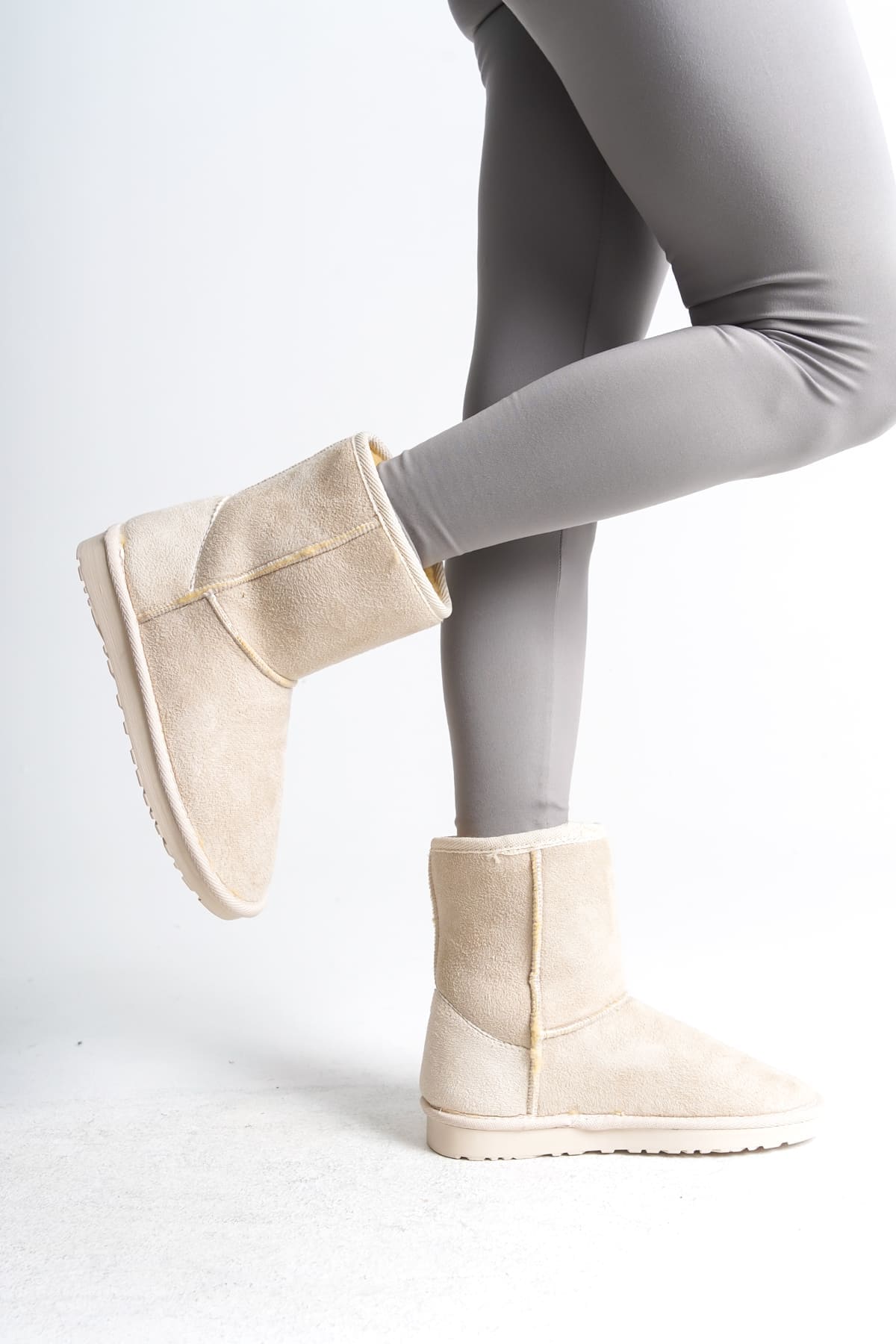 SELINA Bağcıksız Düz Taban İçi Kürklü Süet Kadın Bot SKT – Krem