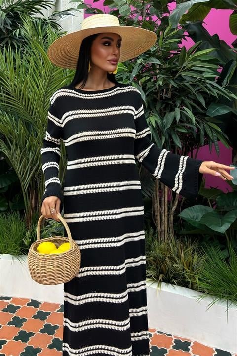 Sırt Dekolteli İspanyol Kol Triko Elbise 2848