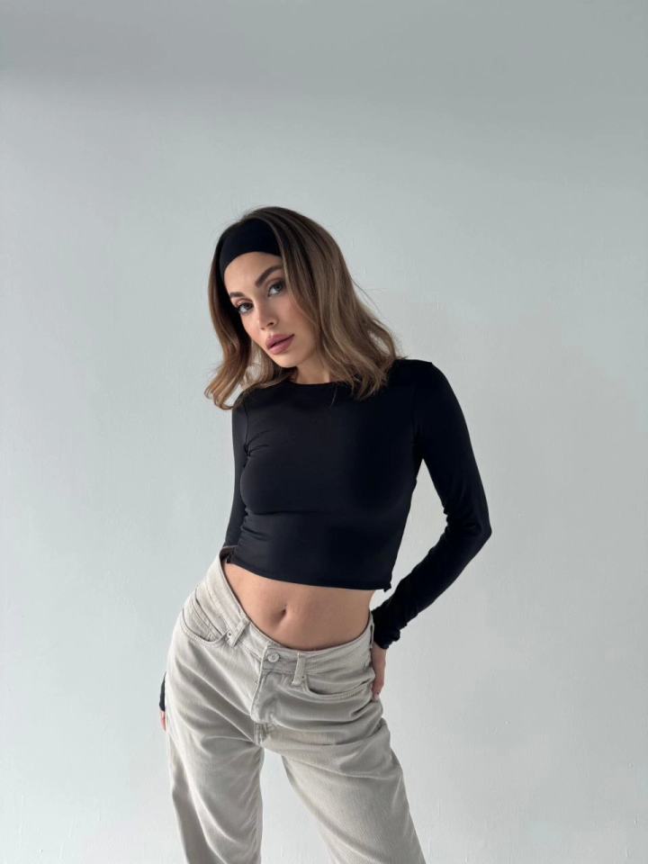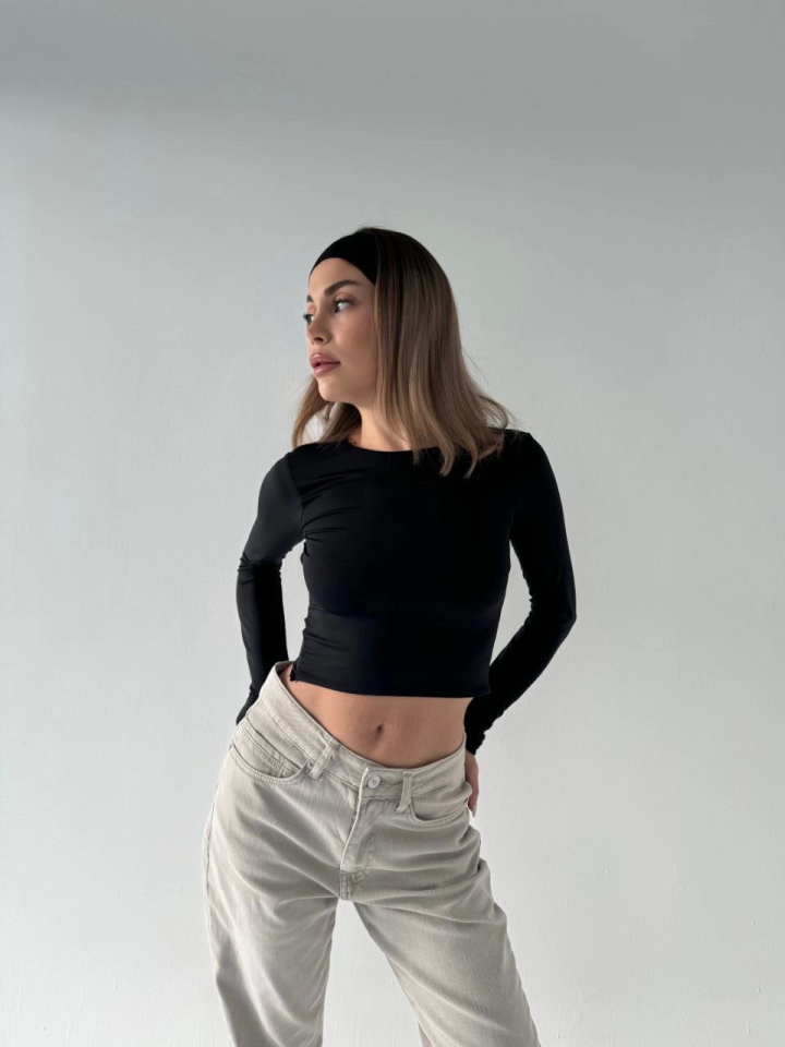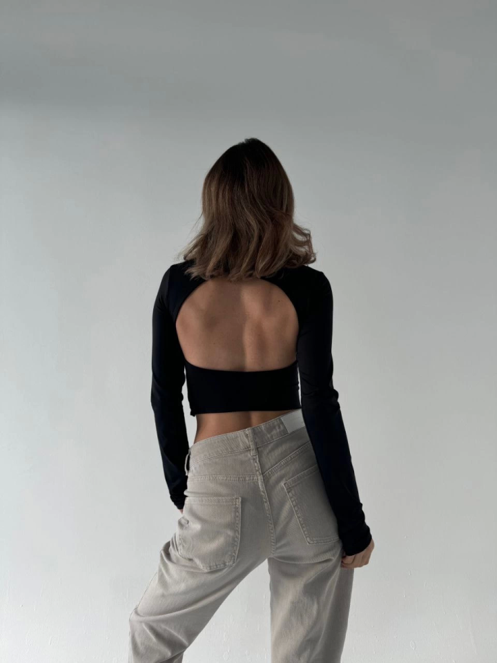 Sırt Dekoltelı Uzun Kollu Crop – Siyah