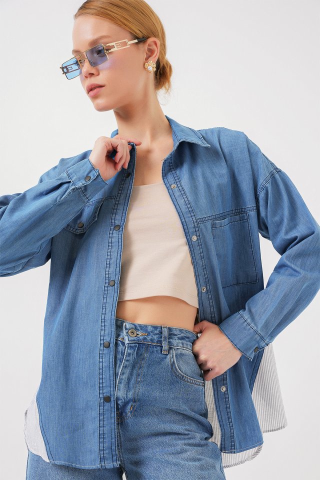 Sırt Detaylı Kot Gömlek 20305 – Mavi