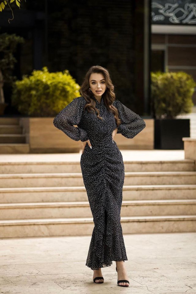 Siyah Balık Şifon Elbise