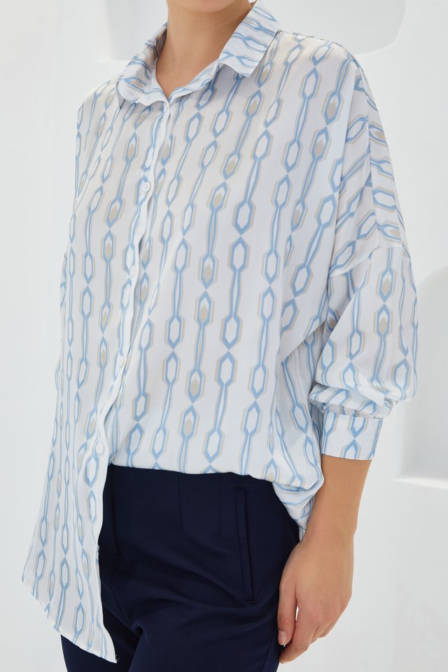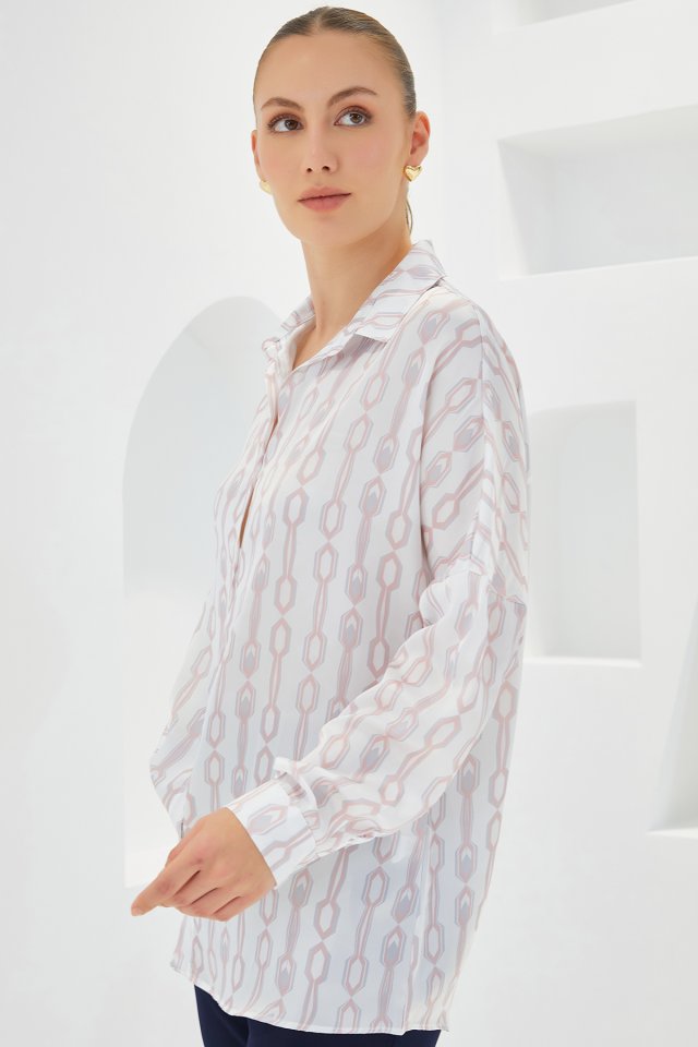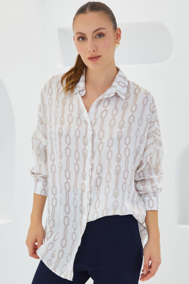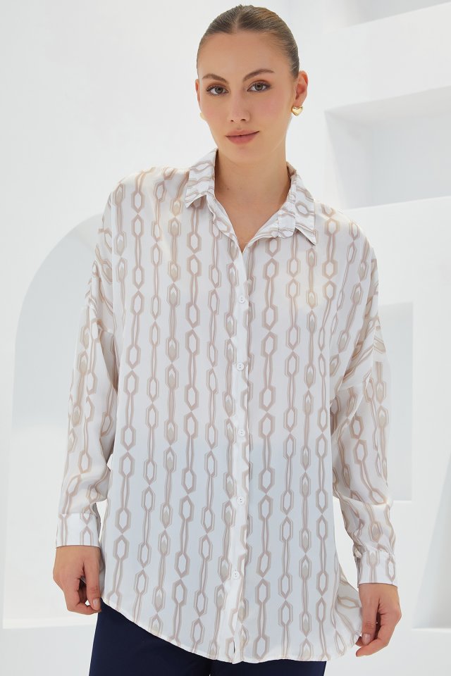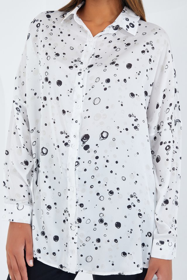 Siyah Beyaz Desenli Oversize Saten Gömlek 3985
