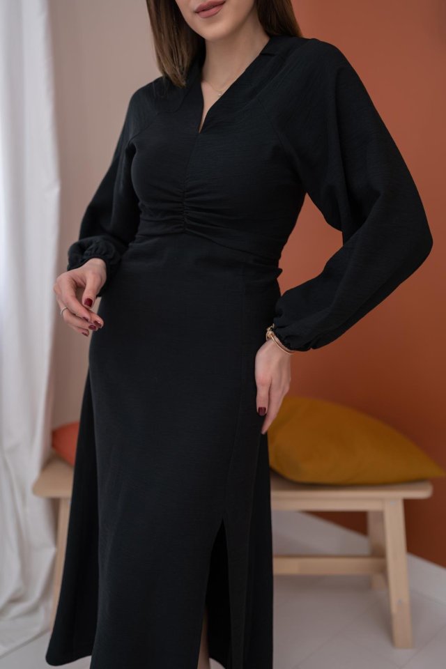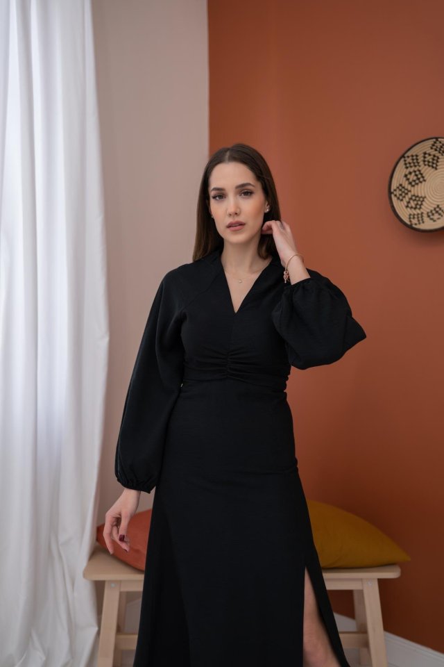 Siyah Büzgülü Krep Elbise