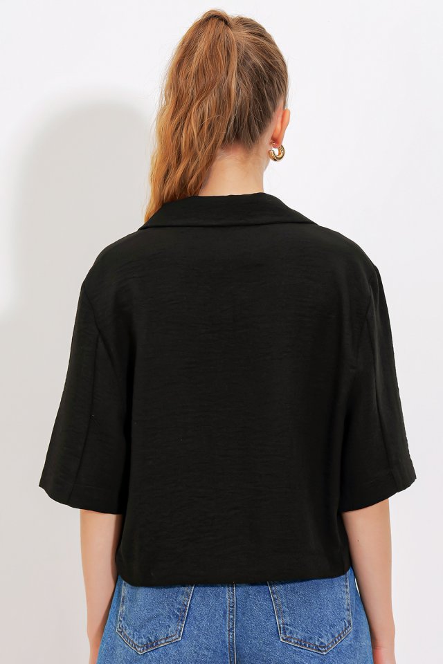 Siyah Çift Düğmeli Oversize Crop Keten Ceket 0706