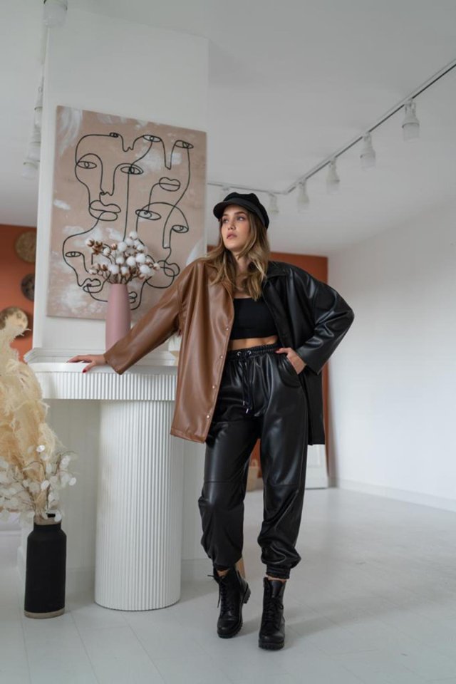 Siyah Garnili Çıtçıtlı Deri Gömlek