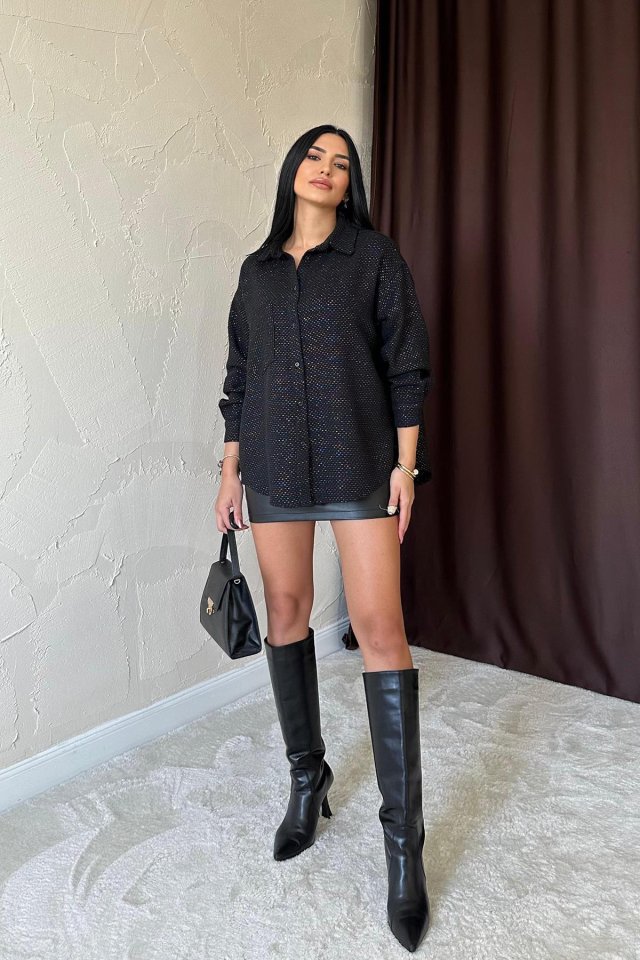 Siyah Işıltılı Gömlek