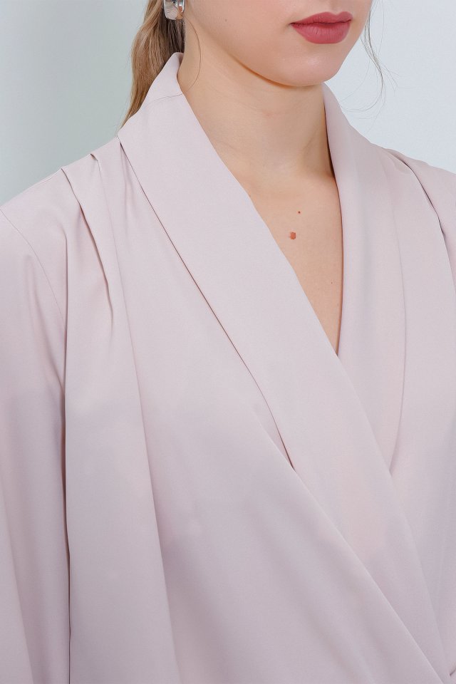 Siyah Kruvaze Yaka Dökümlü Saten Bluz 0492