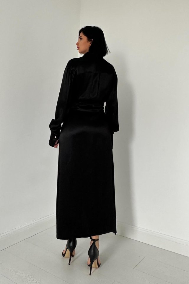 Siyah Kuşaklı Gömlek Elbise
