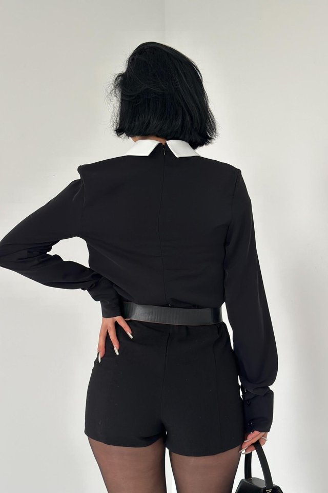 Siyah Önü Kravat Detaylı Bluz