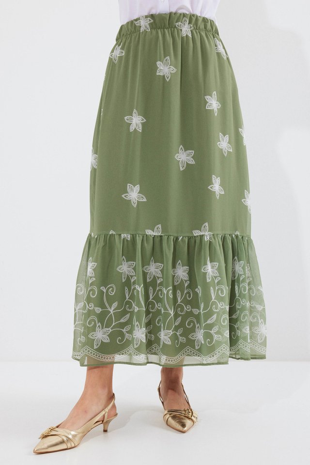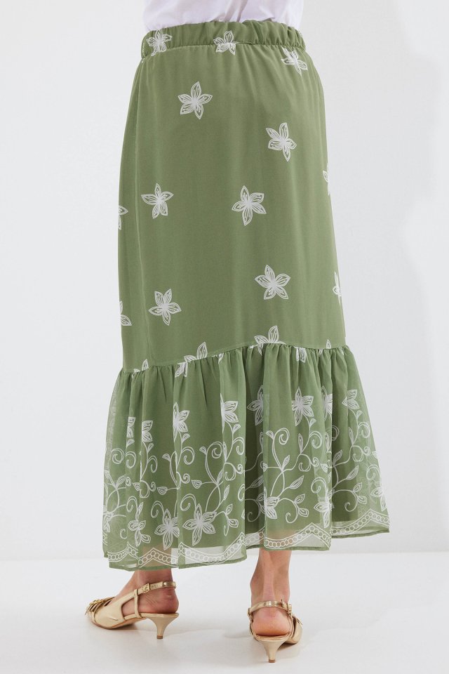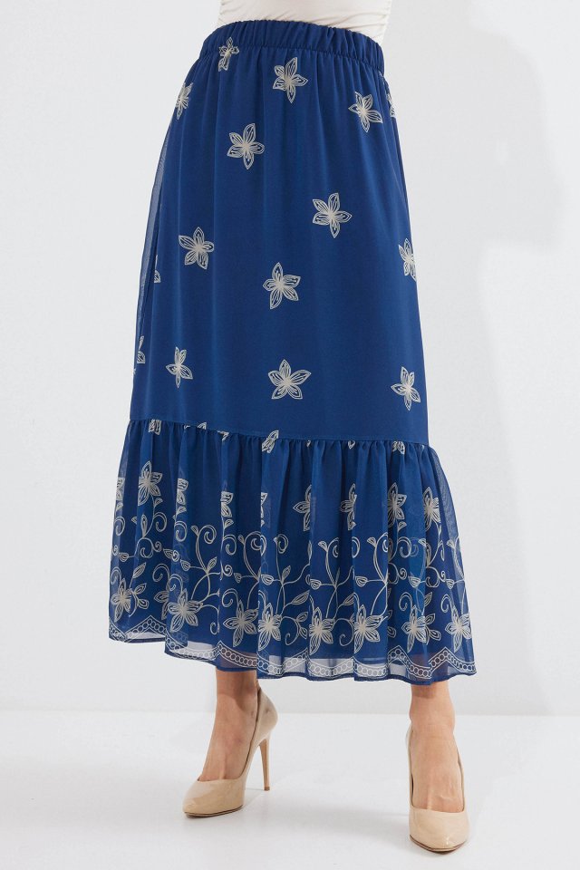 Siyah Turuncu Desenli Şifon Etek 8010