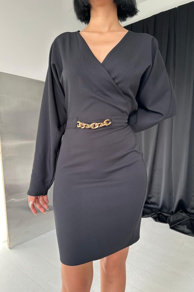 Siyah Zincir Detaylı Elbise