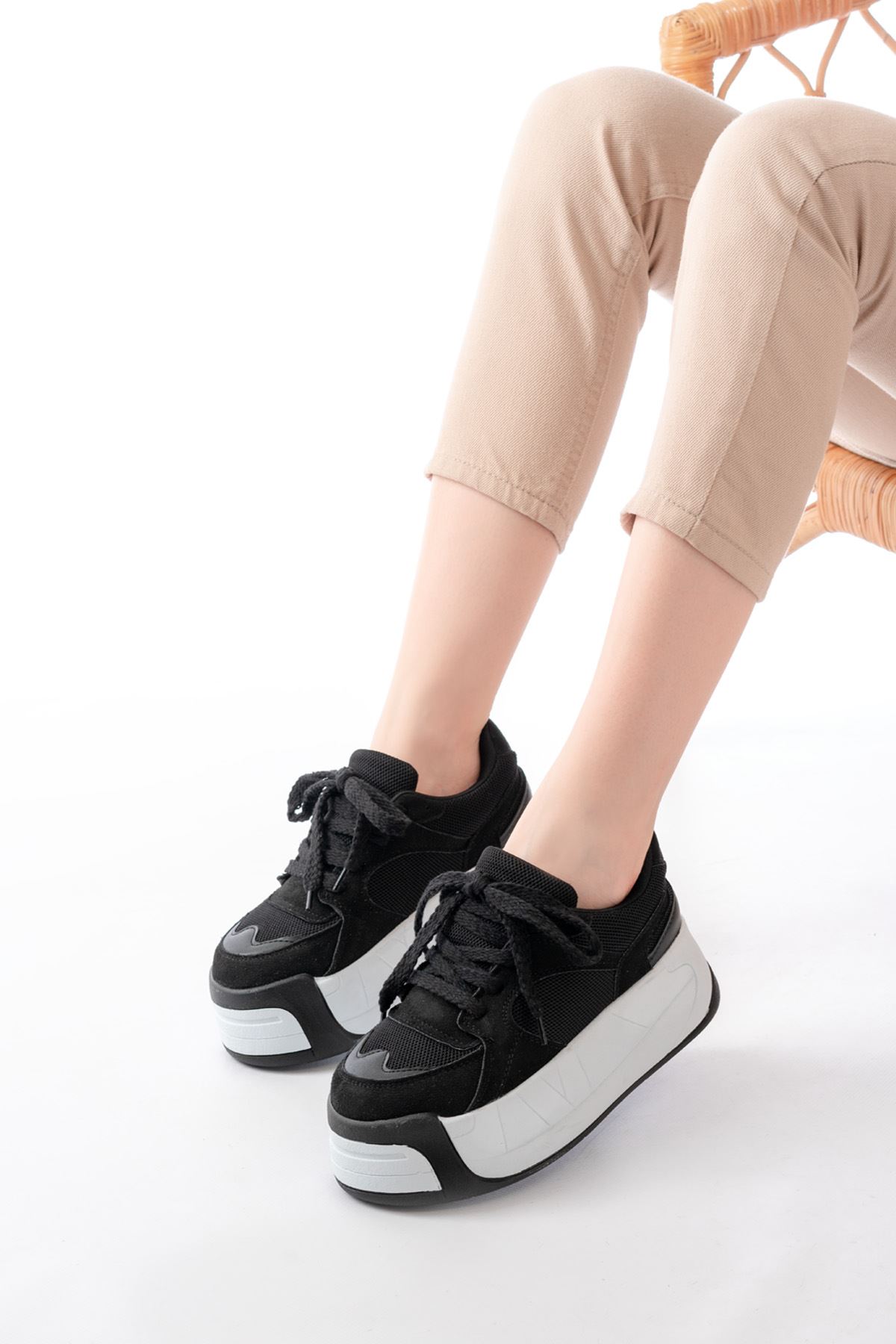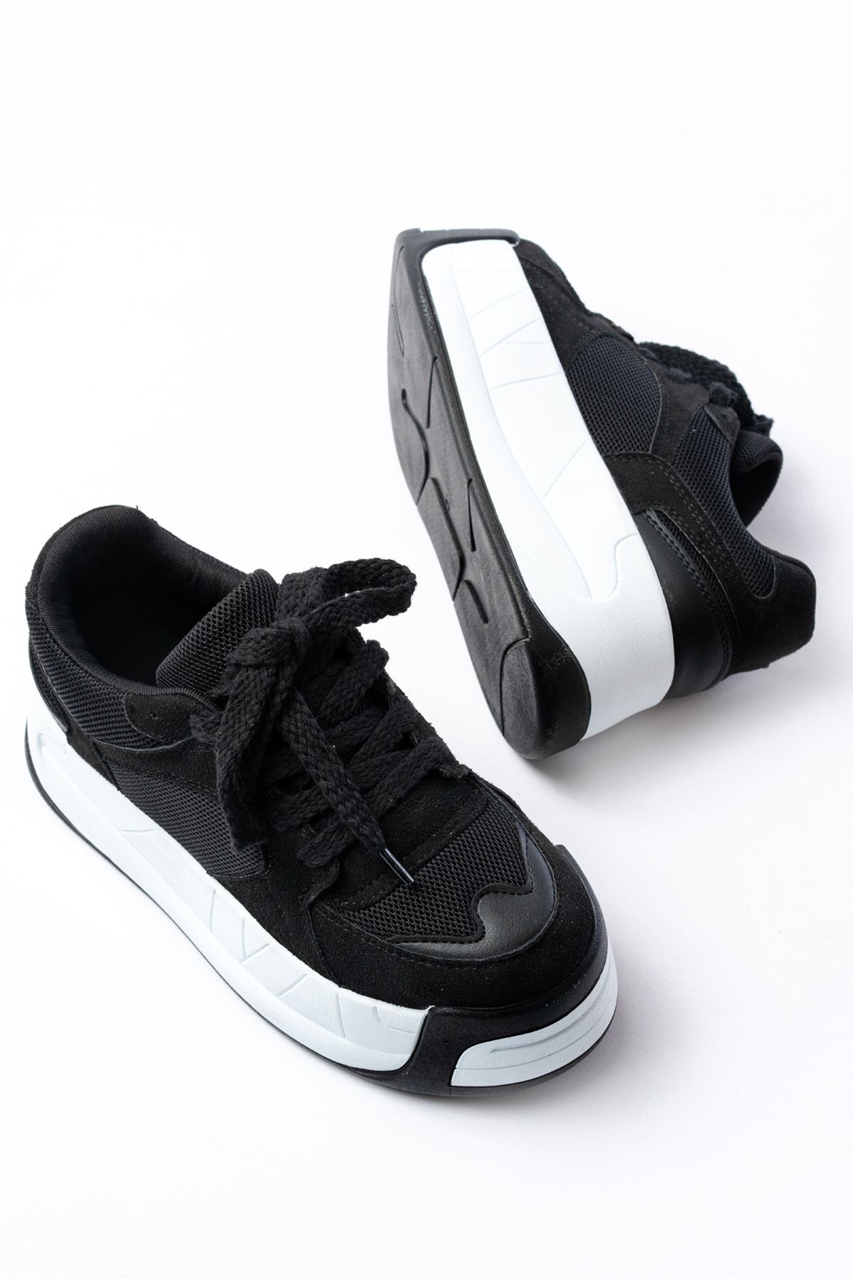 SP-190 Siyah Garni Bağcıklı Fileli Yüksek Taban Günlük Spor Ayakkabı