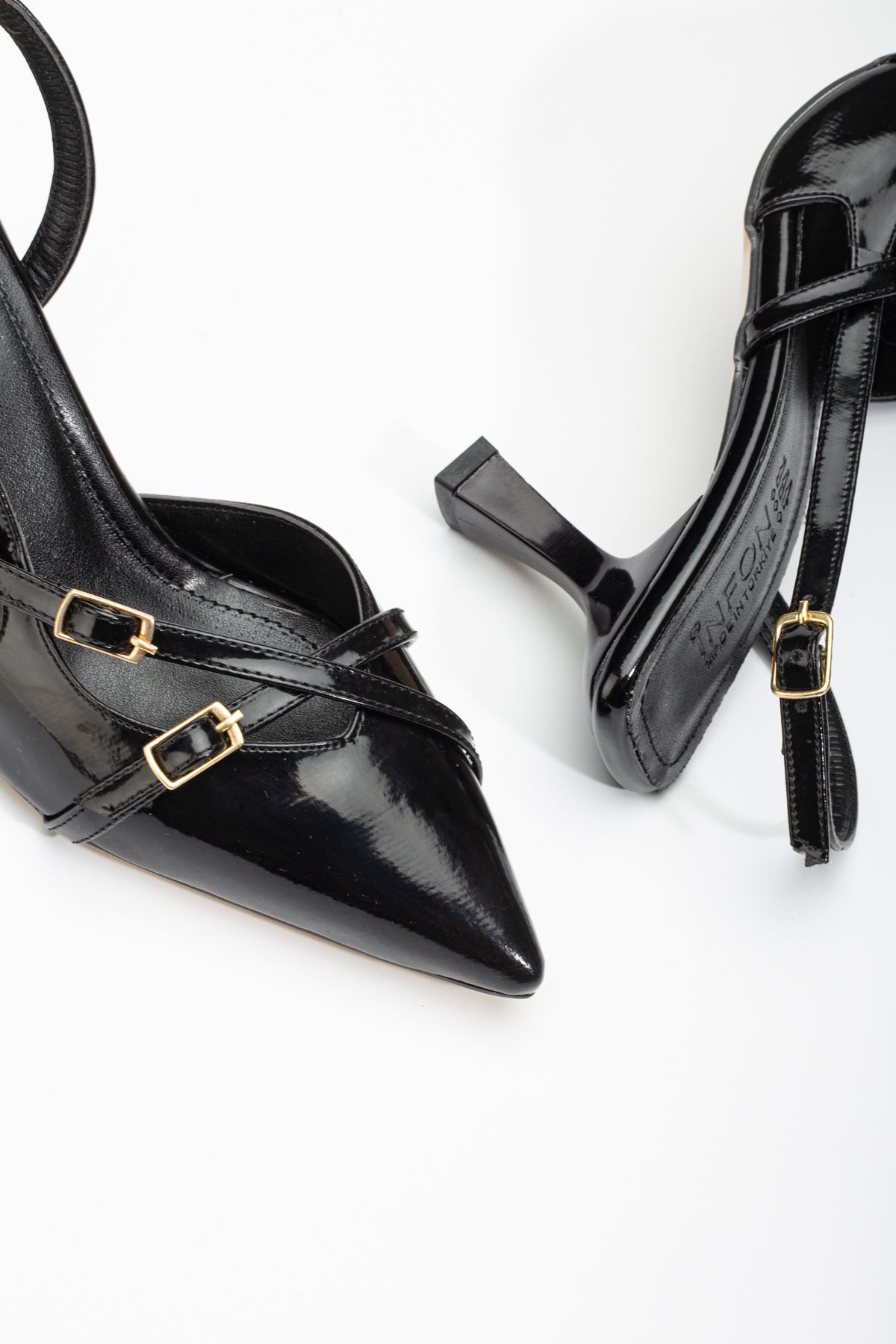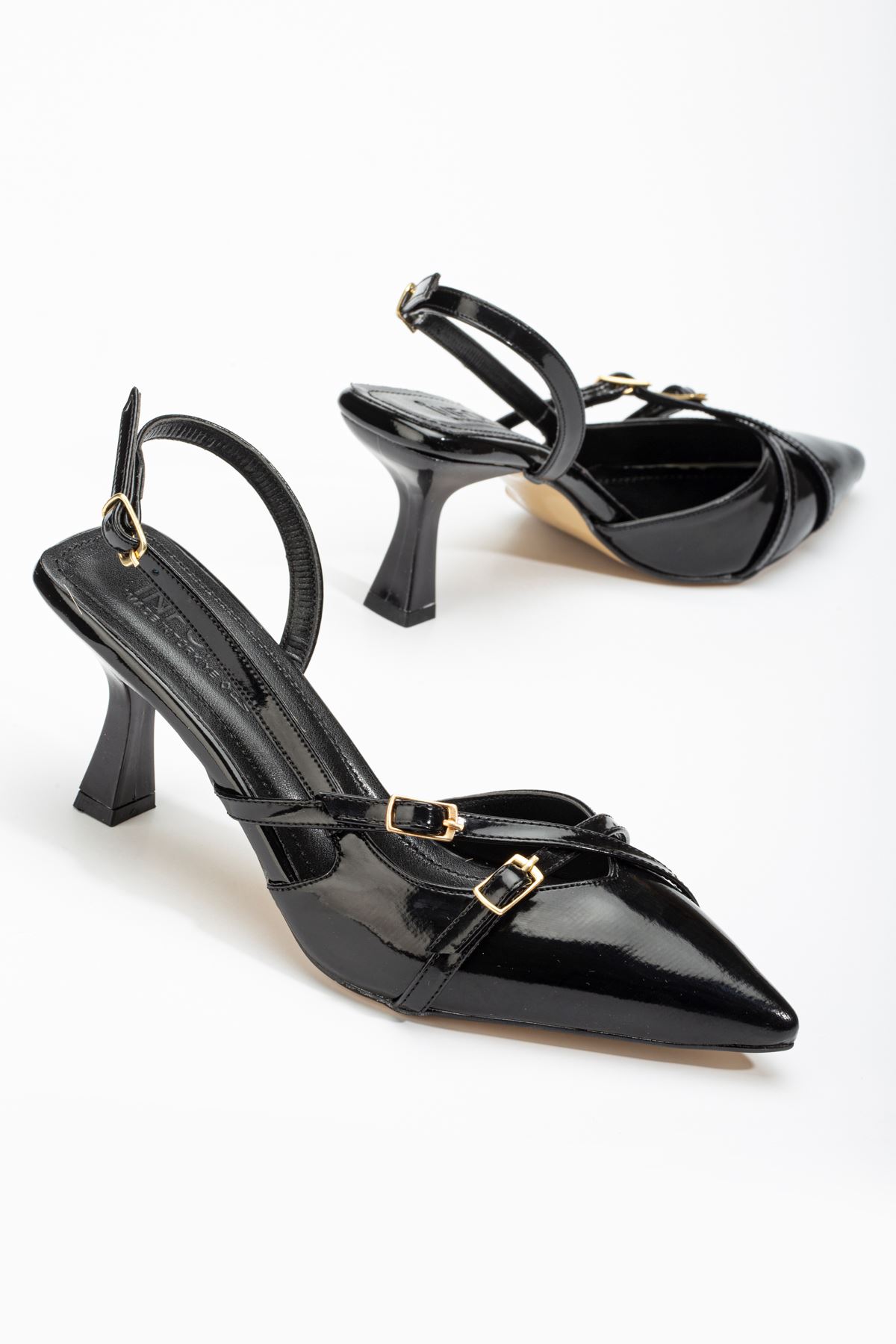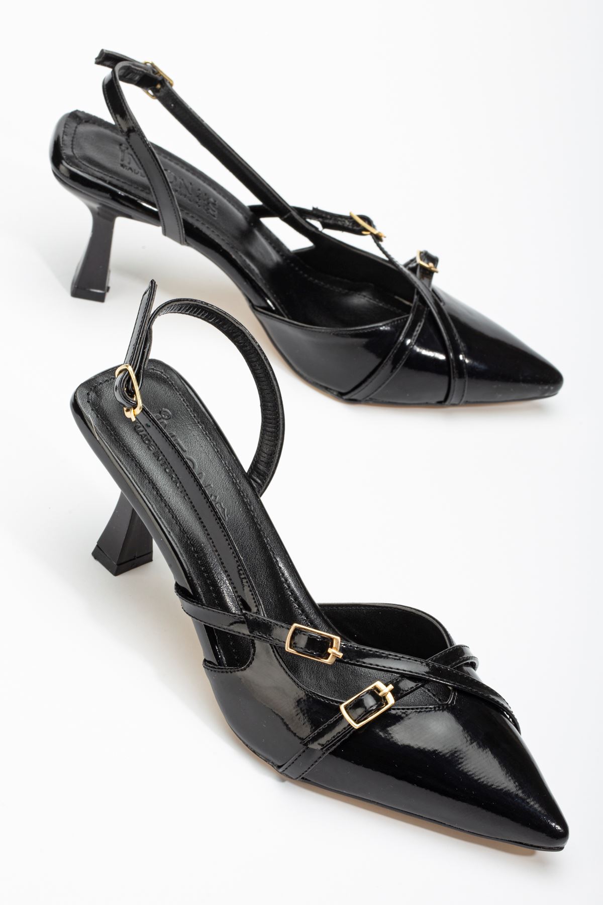 ST-005 Siyah Rugan Günlük 7 cm Topuklu Bayan Ayakkabı