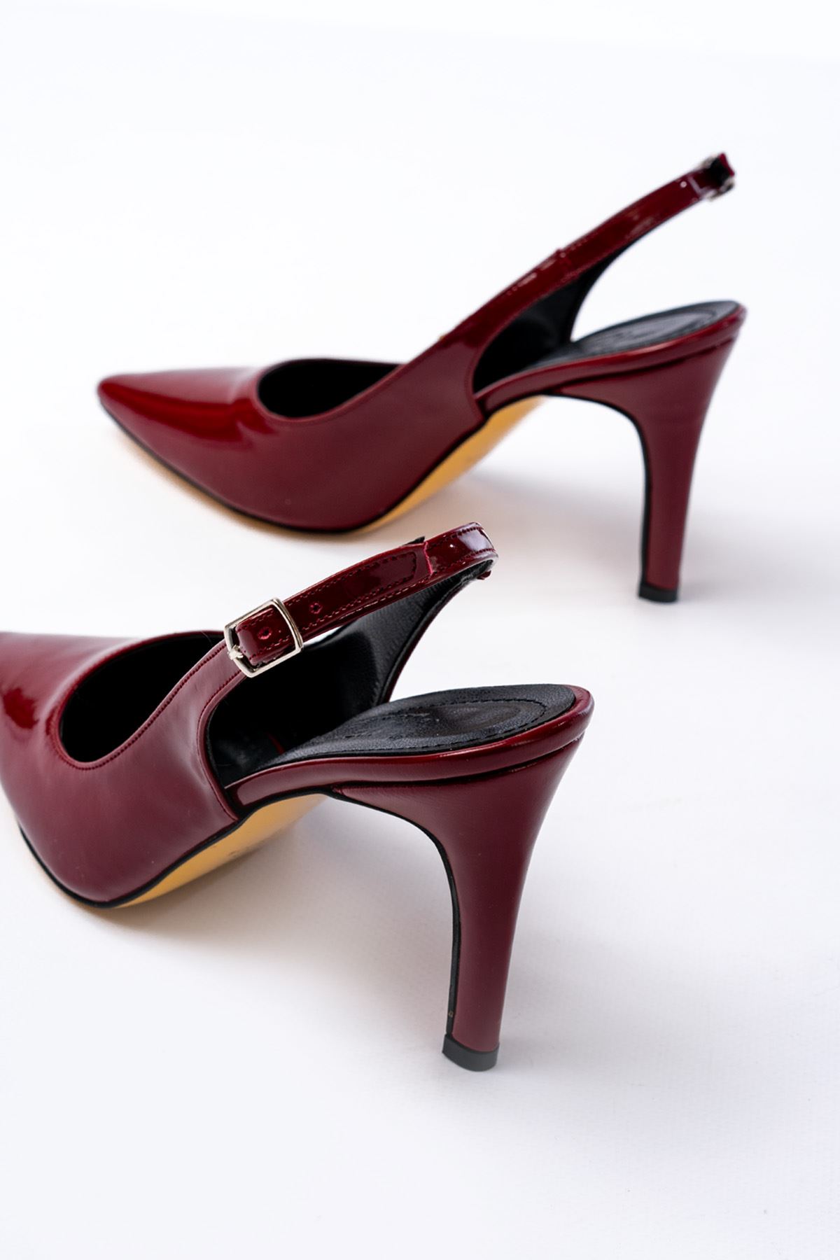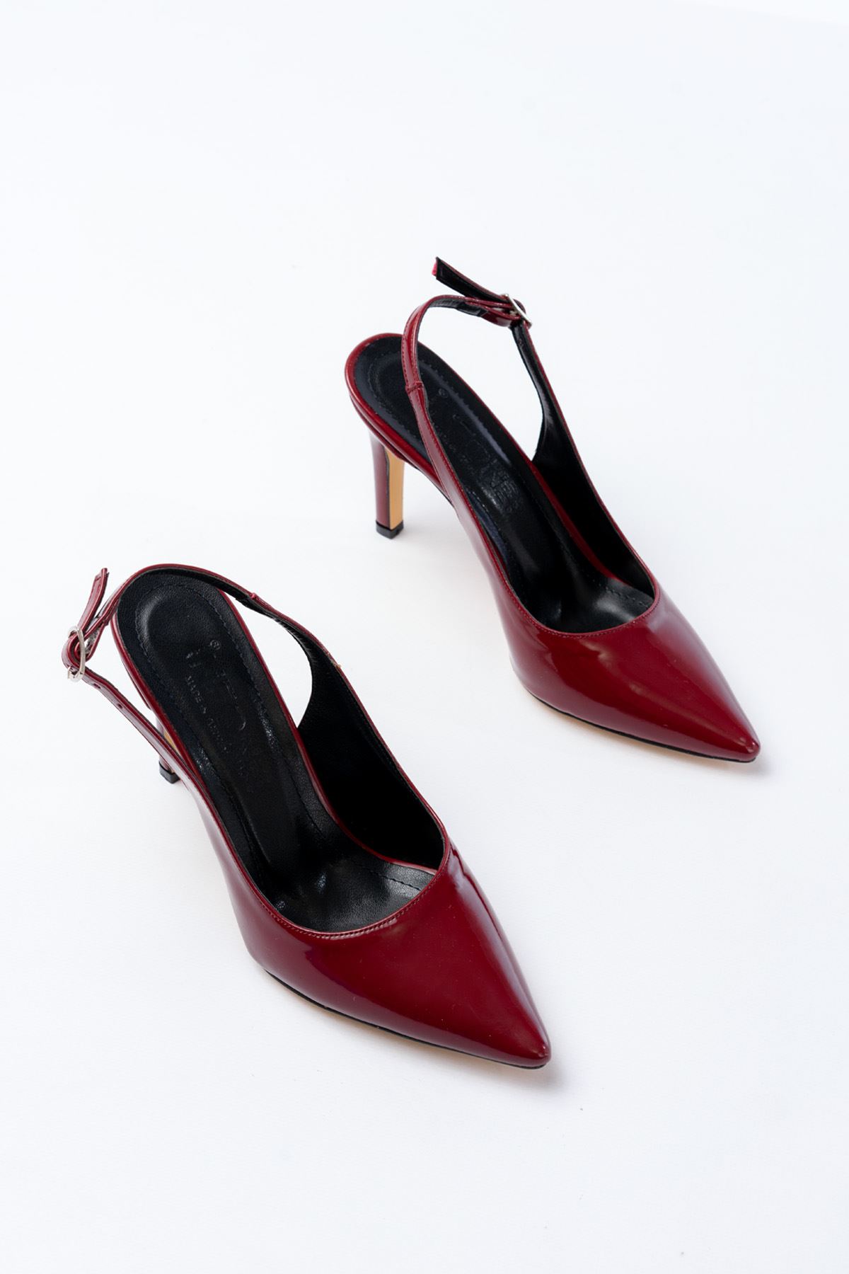ST-1153 Bordo Rugan Günlük Arkası Açık 9 cm Topuklu Kadın Ayakkabı