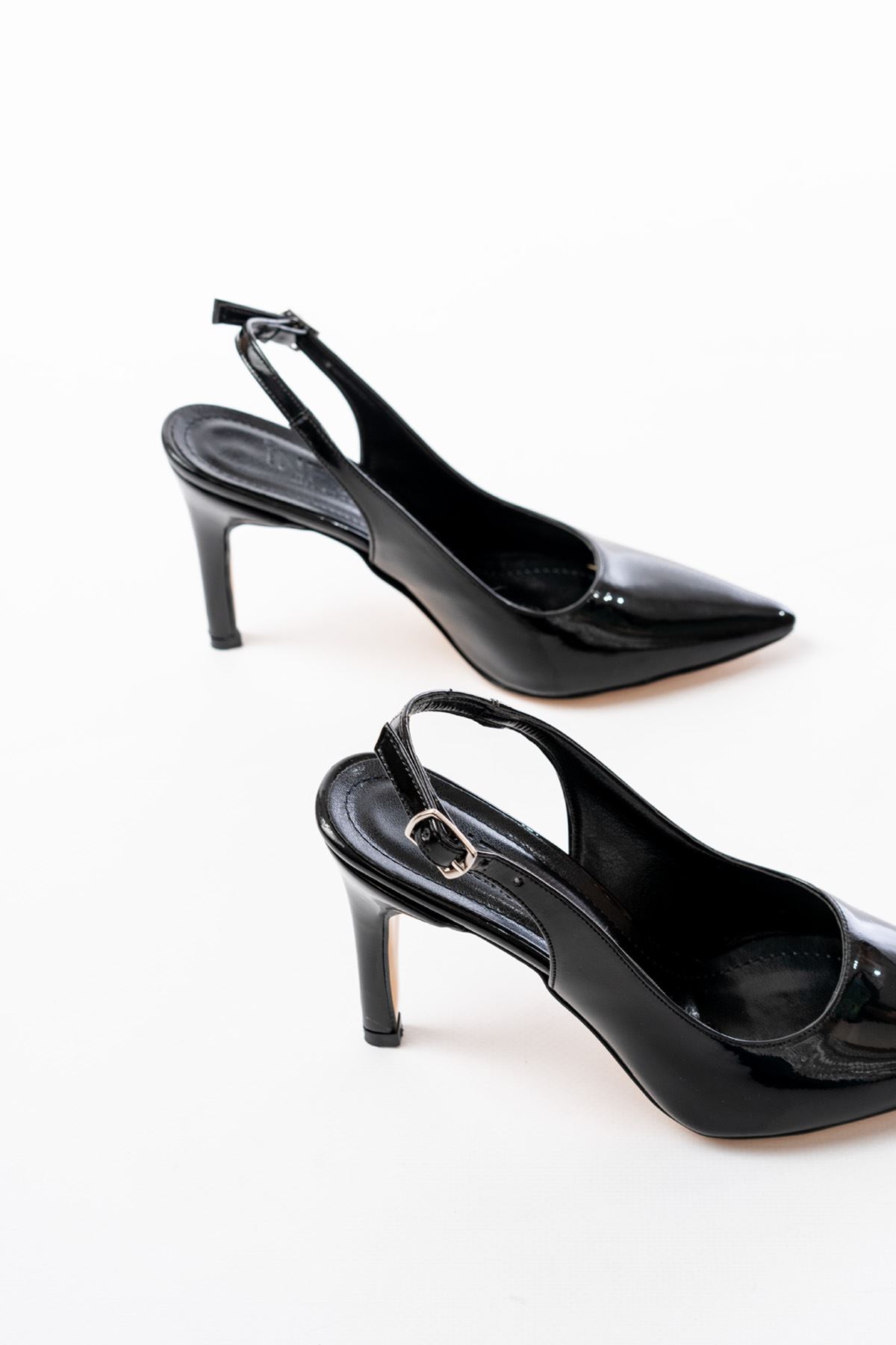 ST-1153 Siyah Rugan Günlük Arkası Açık 9 cm Topuklu Kadın Ayakkabı