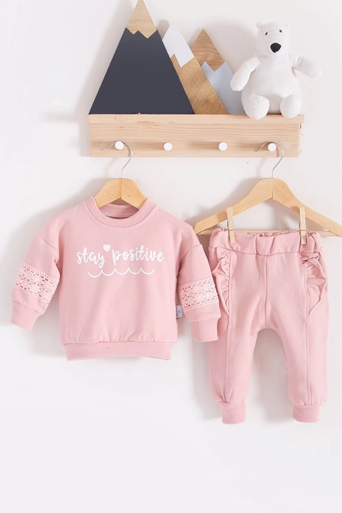 Stay Pozitive Dantelli 2’li Pamuk Kız Bebek Takım