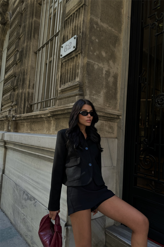 SÜET CROP CEKET KAPAKLI CEP DETAYLI – Siyah