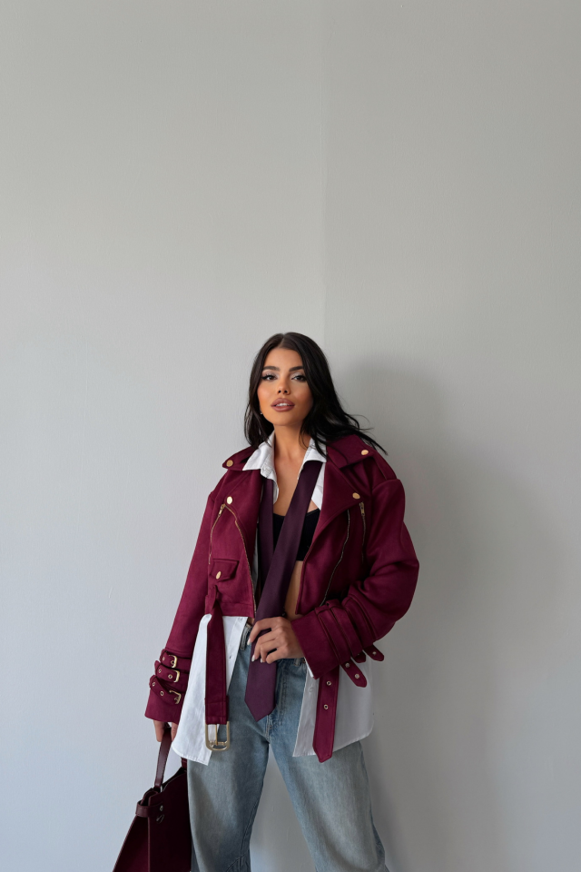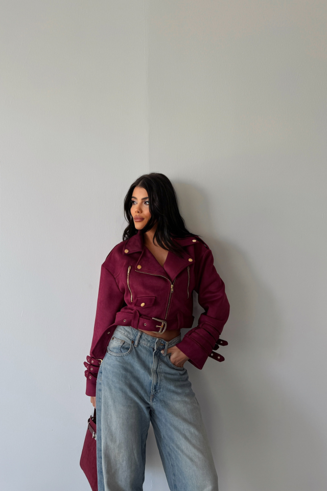 SÜET CROP CEKET KOL 3 KEMER DETAYLI – Bordo