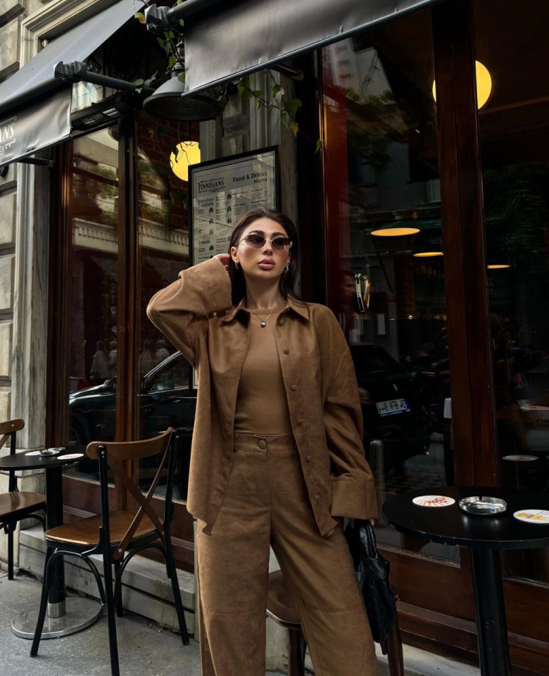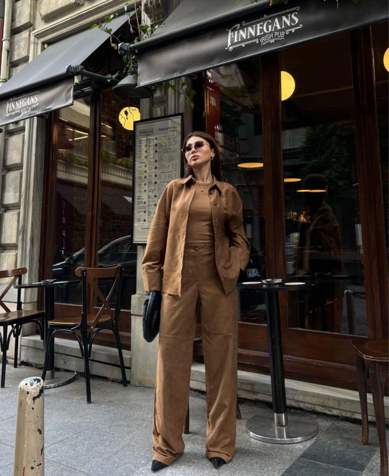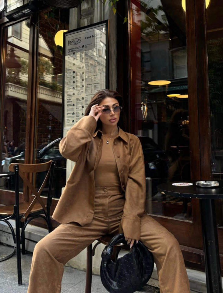 Süet Gömlek Palazzo Pantolon İkili Takım – Kahve