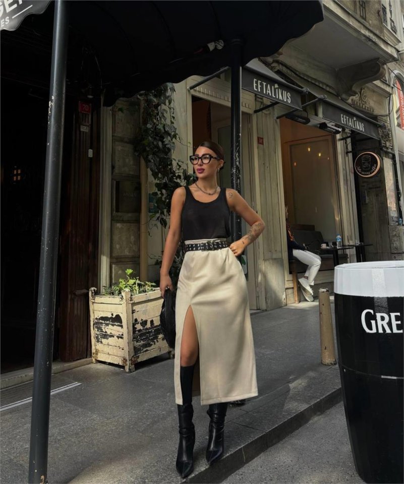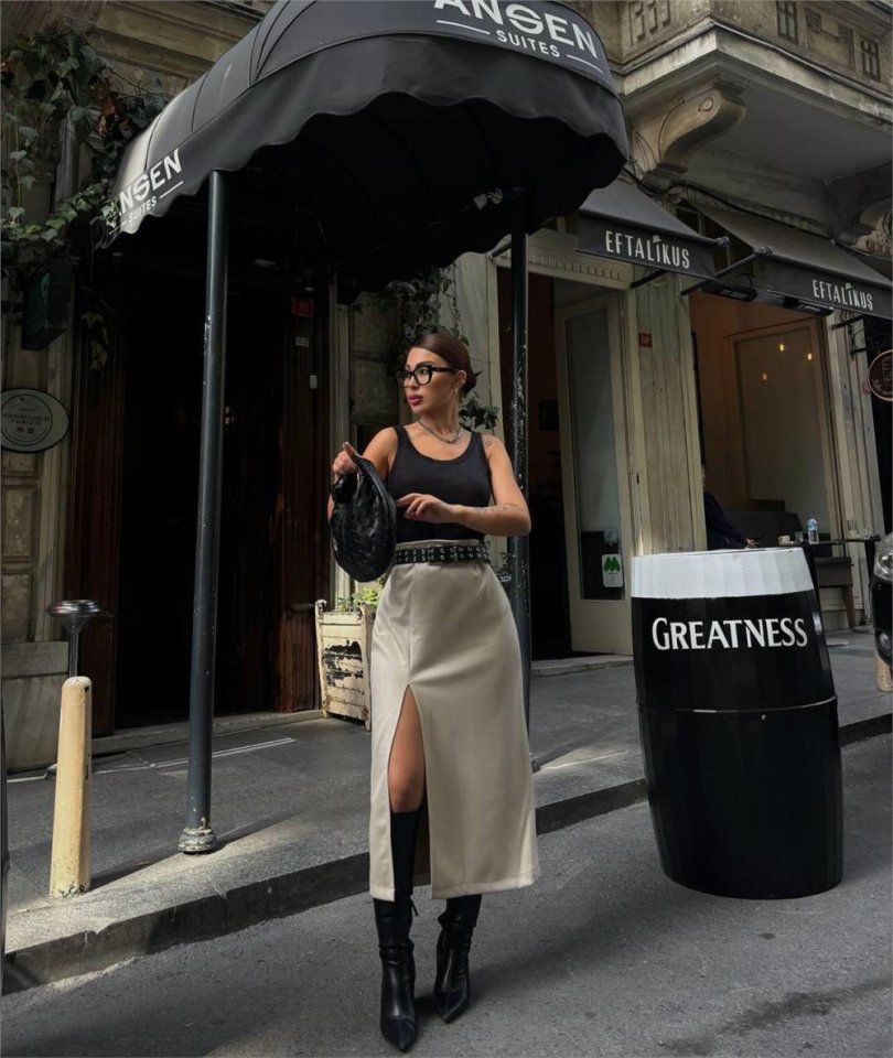 SÜET KALEM ETEK YIRTMAÇ DETAYLI – Taş