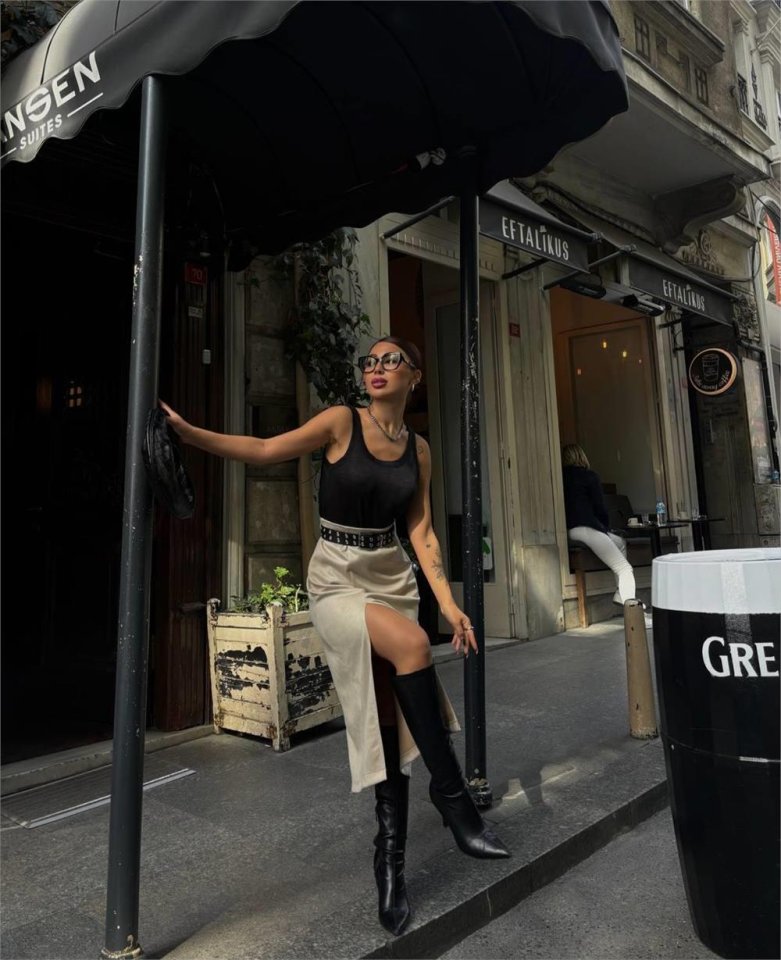 Modelin Ölçüleri: Boy:165, Kg:55, Göğüs:90, Bel:72, Kalça: 100