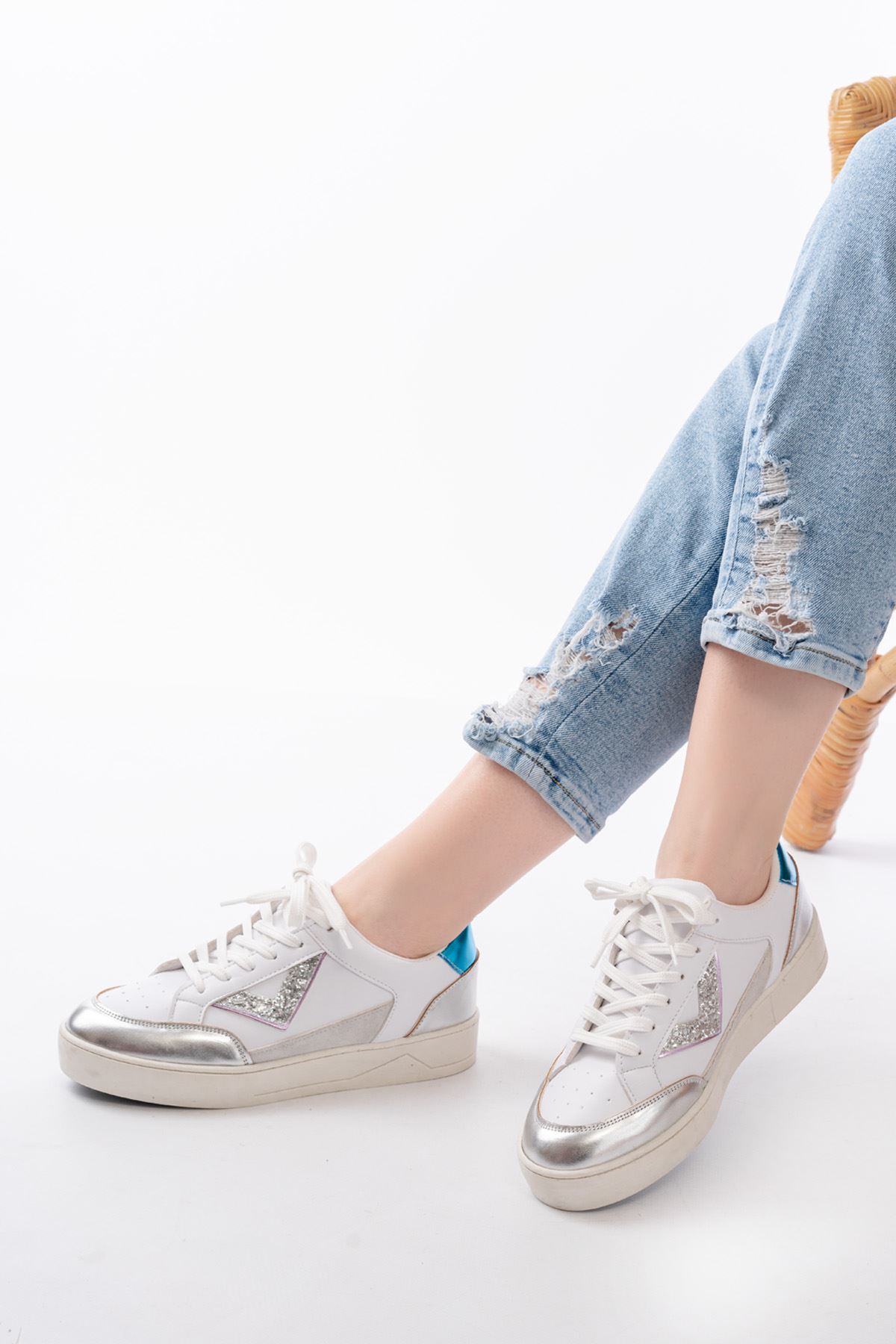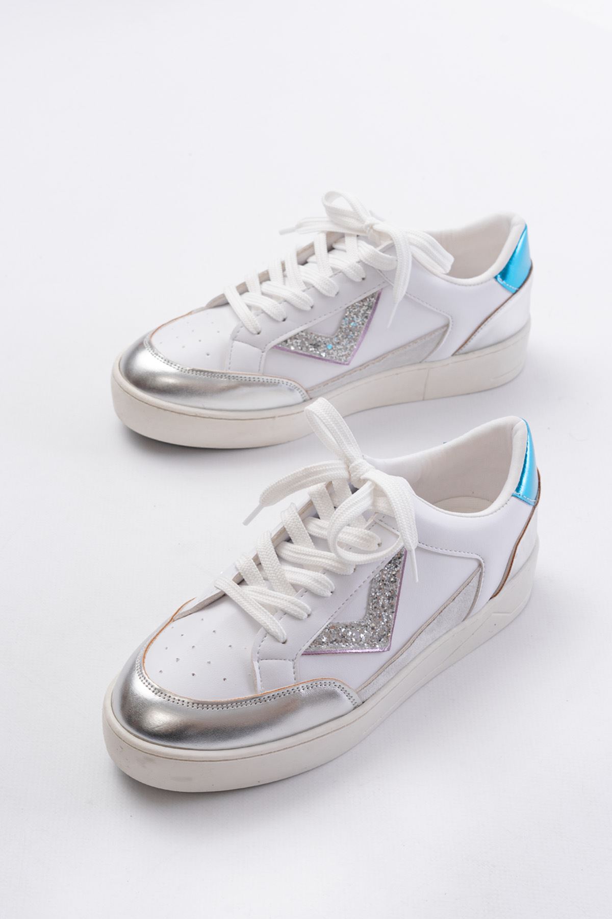 SV-01 Beyaz Garni Bağcıklı Kadın Spor Ayakkabı
