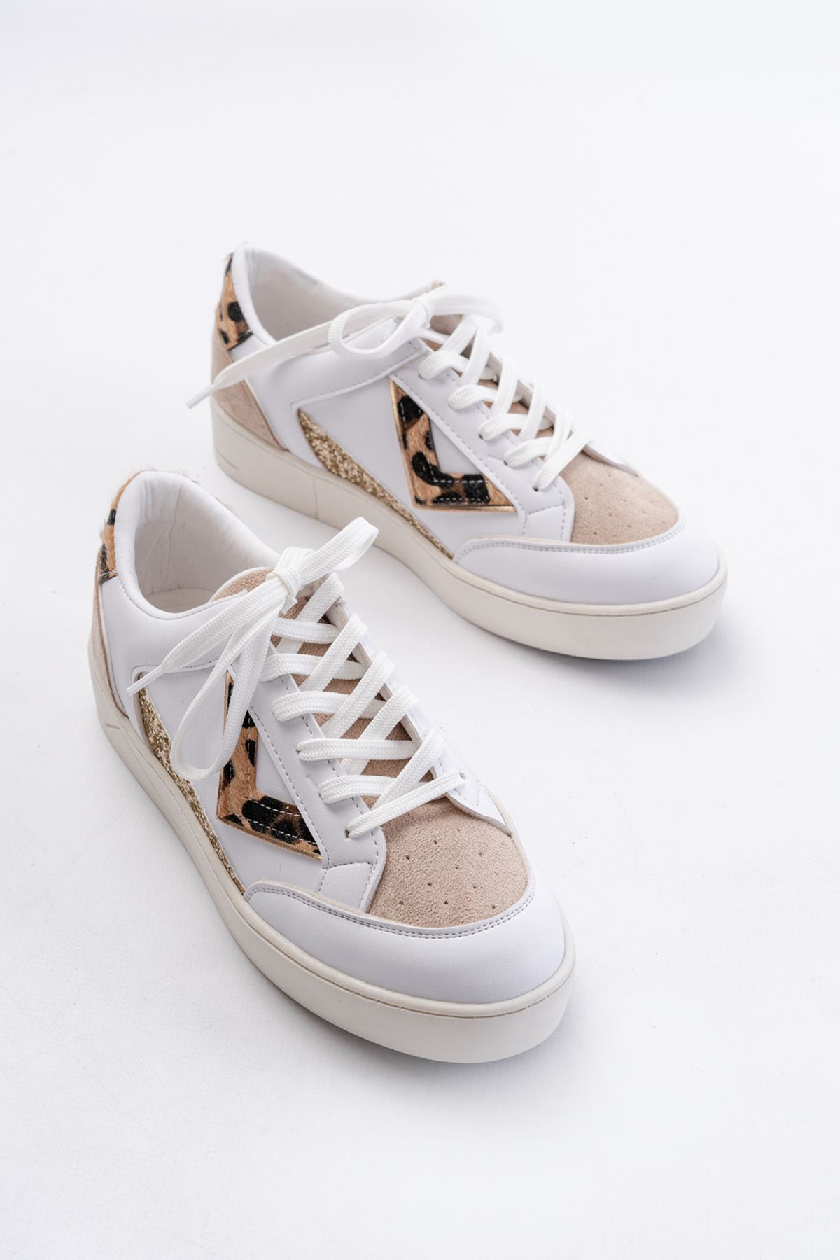 SV-01 Beyaz Leopar Desenli Bağcıklı Kadın Spor Ayakkabı