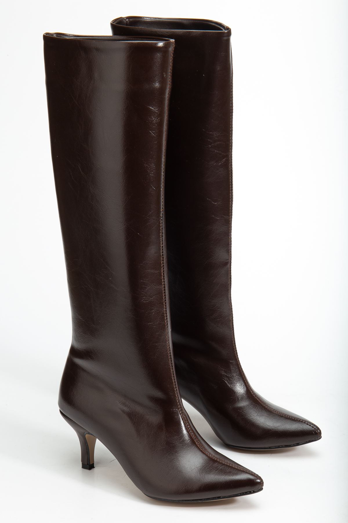 SYT-2025 Kahve Kırışık Rugan Günlük Kadın Çizme