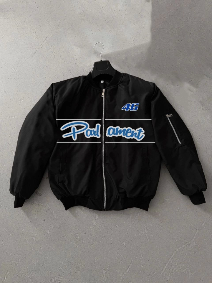Tam Kalıp Uzun Kol Baskılı Bomber Ceket – Siyah