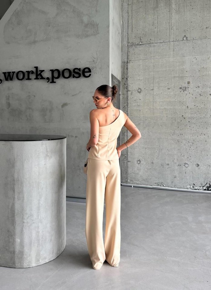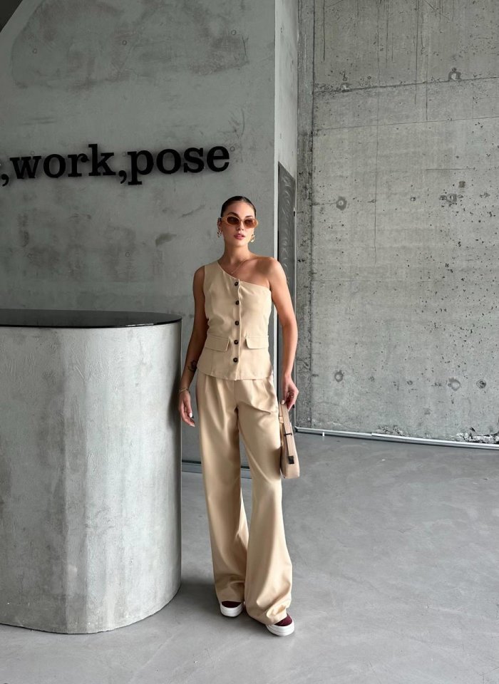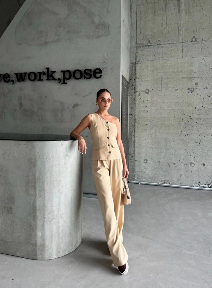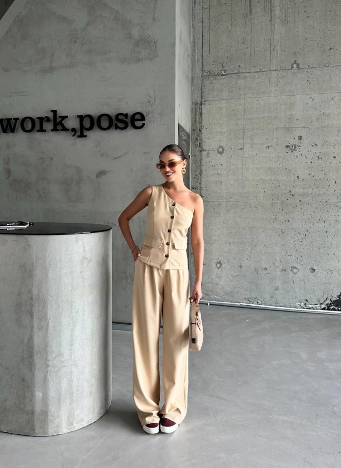 TEK KOL YELEK – PANTOLON TAKIM ATLAS – Bej