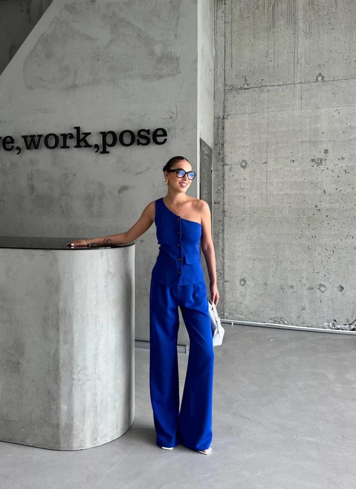 TEK KOL YELEK – PANTOLON TAKIM ATLAS – Mavi