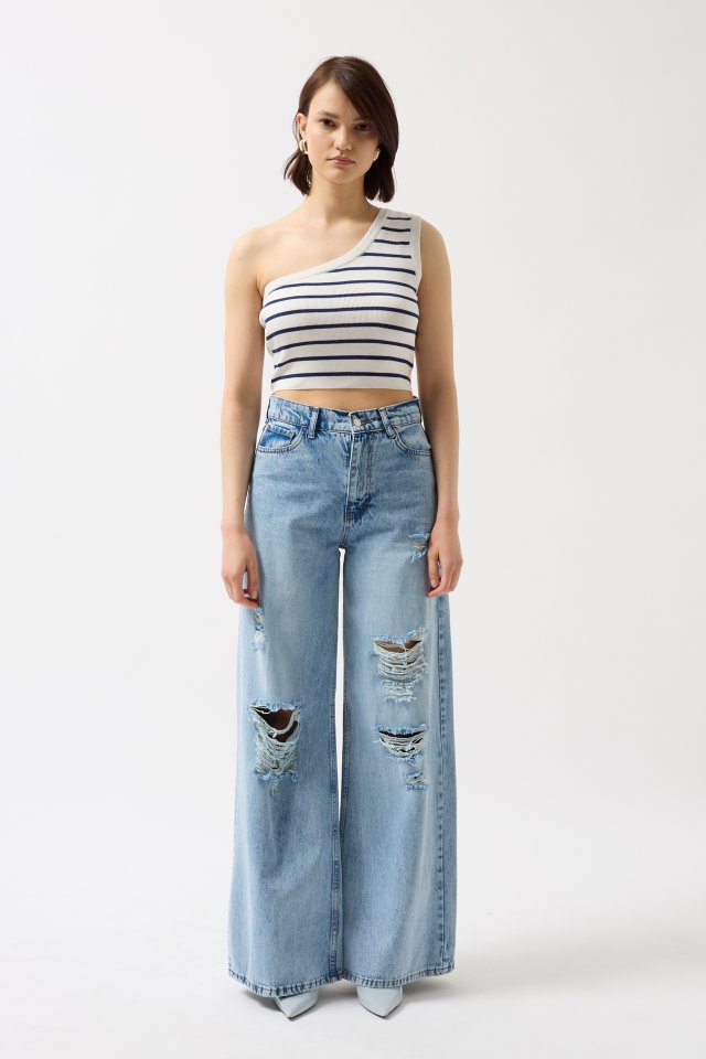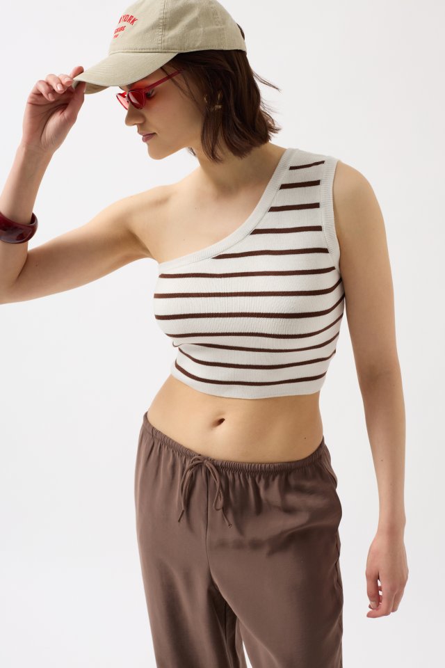 Tek Omuz Çizgili Crop